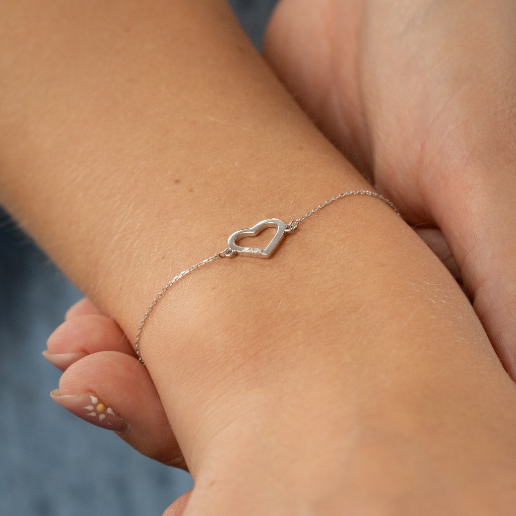 Balto Aukso apyrankė Su Deimantiniu Pakabuku "Širdelė"