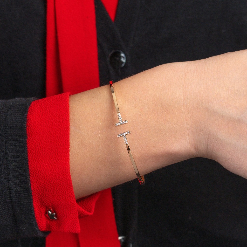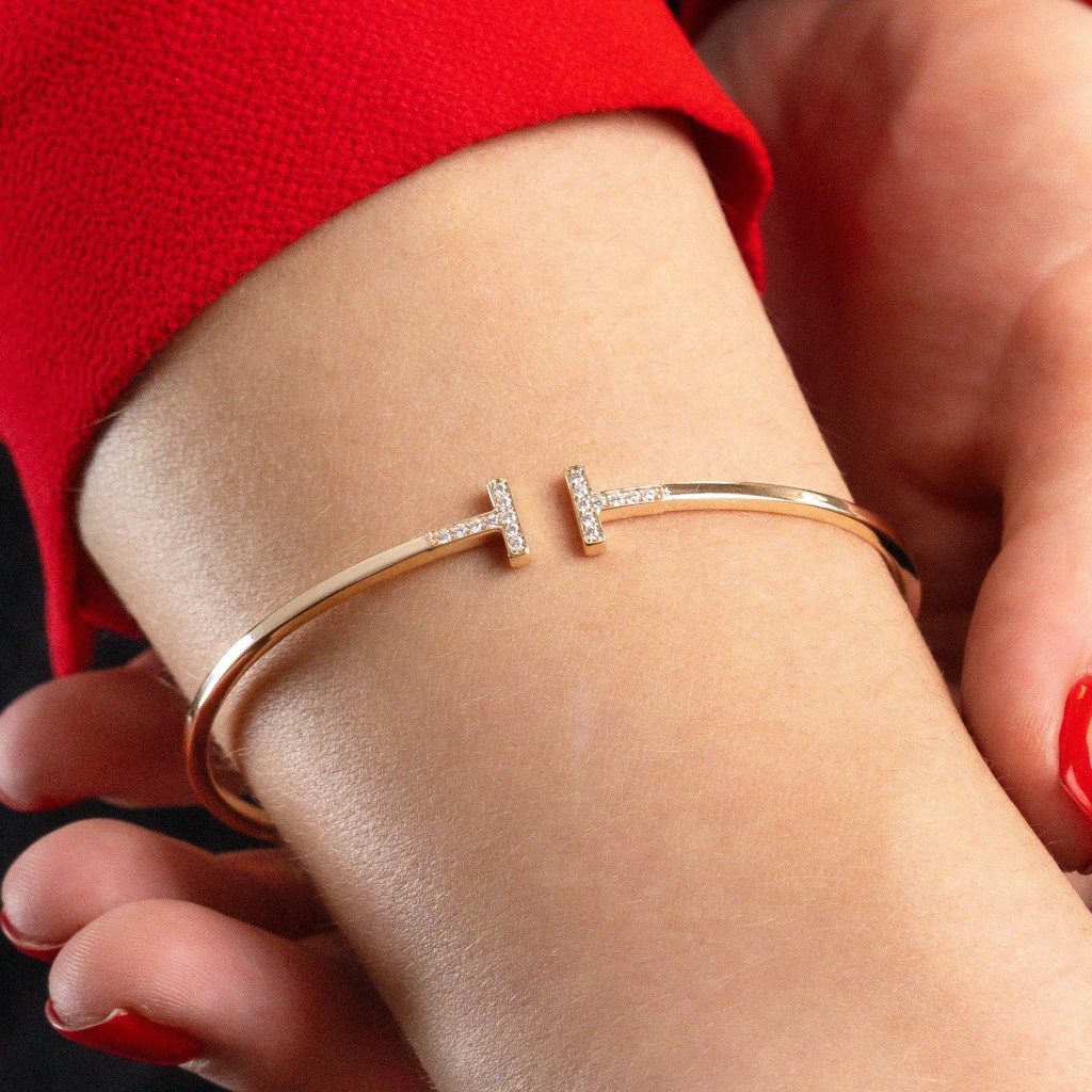 Auksinė Kieta Apyrankė su cirkoniais