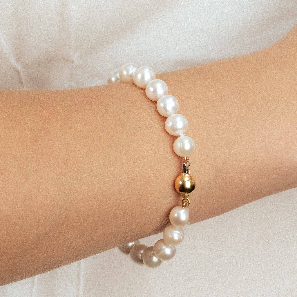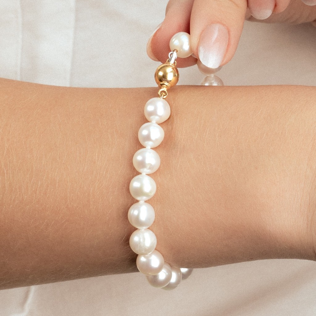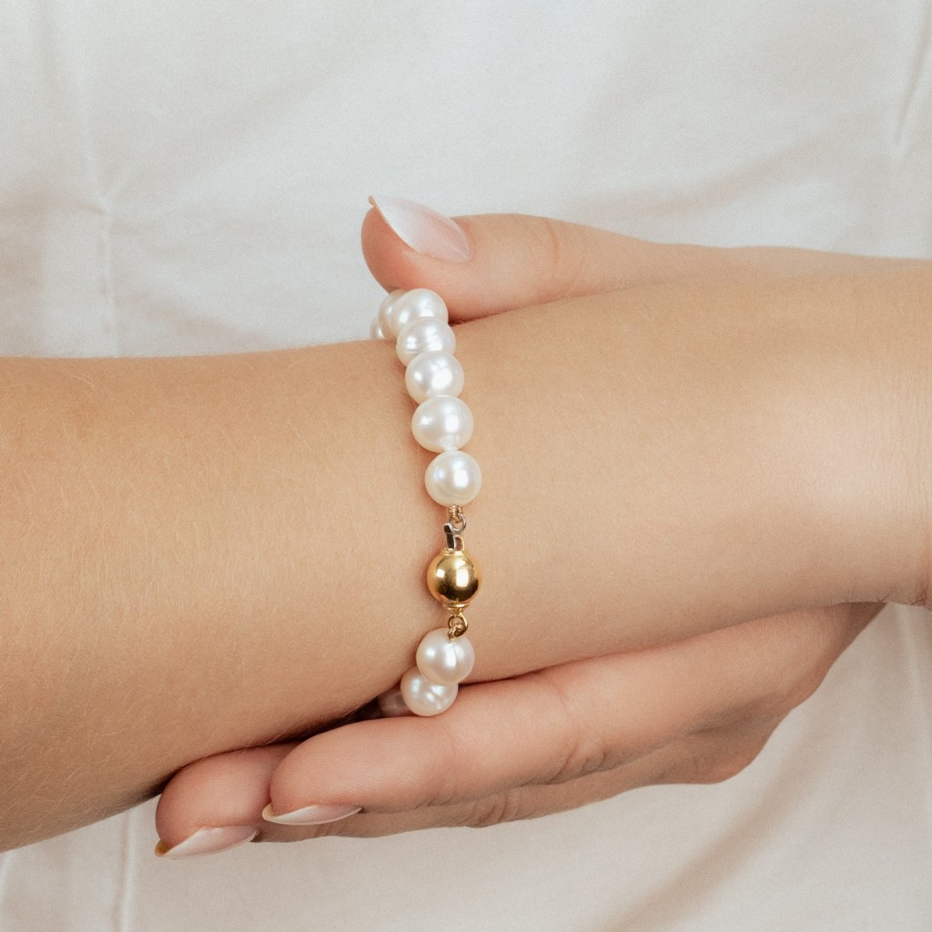 Apyrankė su perlais ir auksu 10mm - Auksinės apyrankės - Goldinga