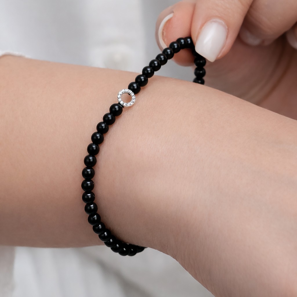 Oniksų apyrankė su cirkoniais ir sidabru