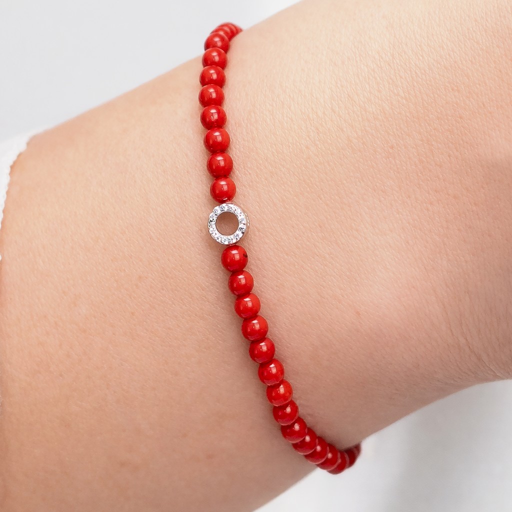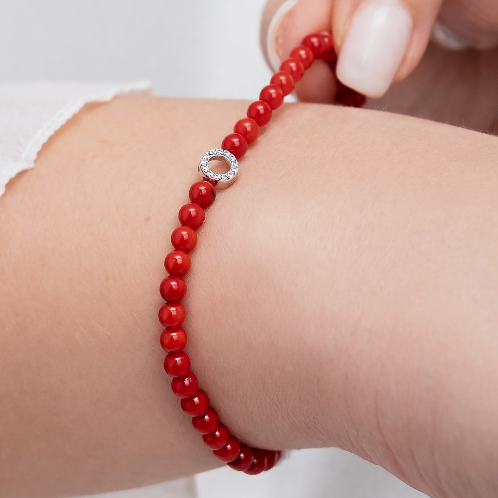 Koralų apyrankė su cirkoniais ir sidabru