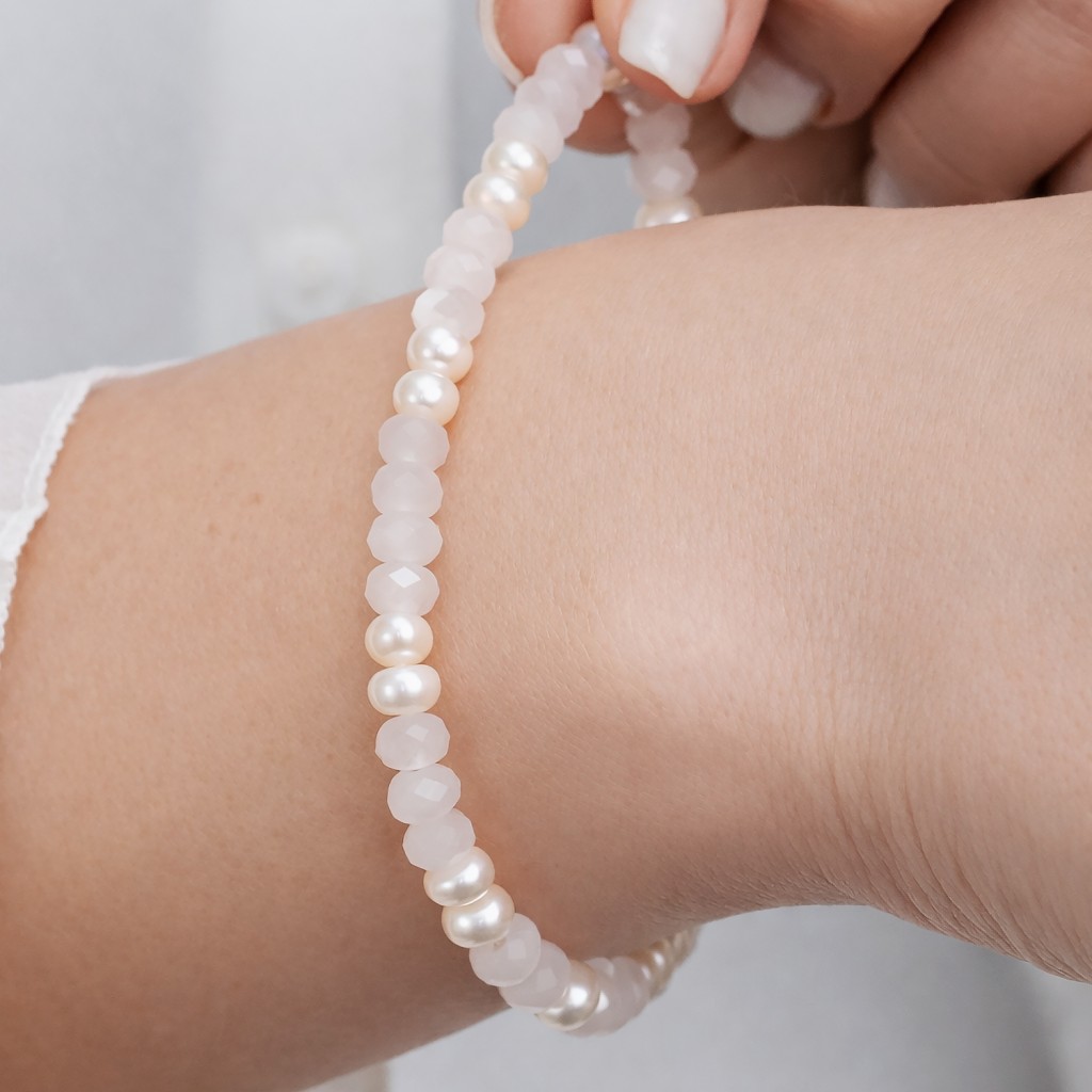 Apyrankė Su Perlais ir rožiniu kvarcu
