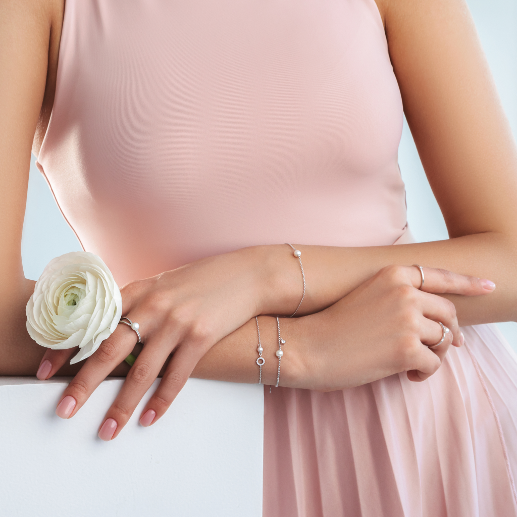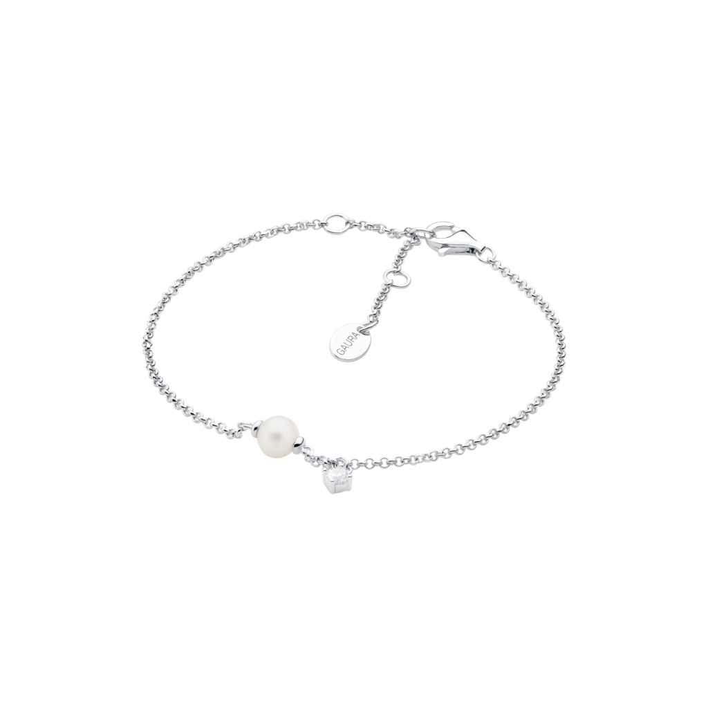 Sidabrinė apyrankė su perlu ir cirkoniu - Perlų apyrankės - Goldinga