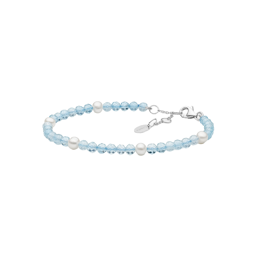 Apyrankė su akvamarinais, perlais ir sidabru