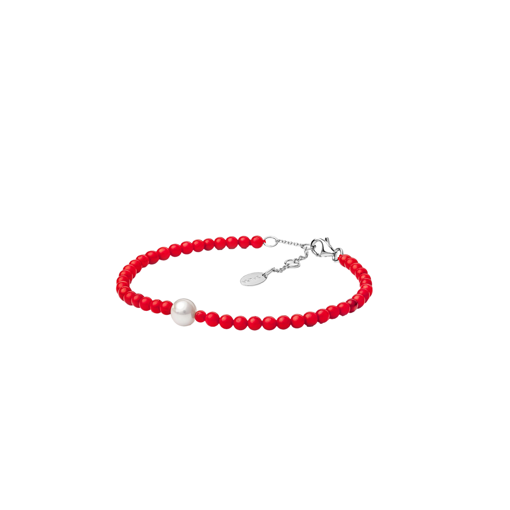 Apyrankė su koralais ir perlu - Perlų apyrankės - Goldinga