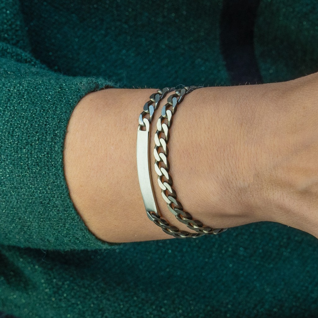 Sidabrinė apyrankė su plokštele "Curb" 6.6mm