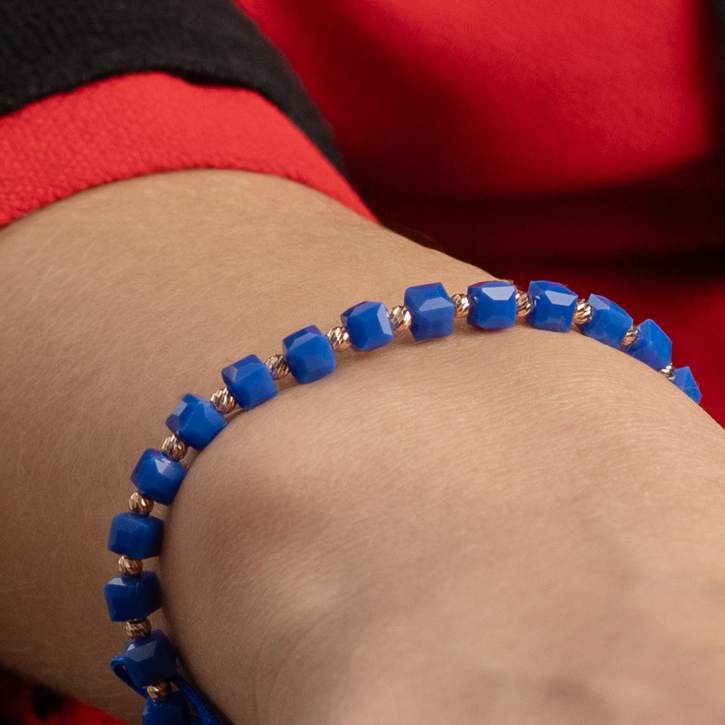 Mėlyno Siūlo Apyrankė Su Auksu Ir Oniksais