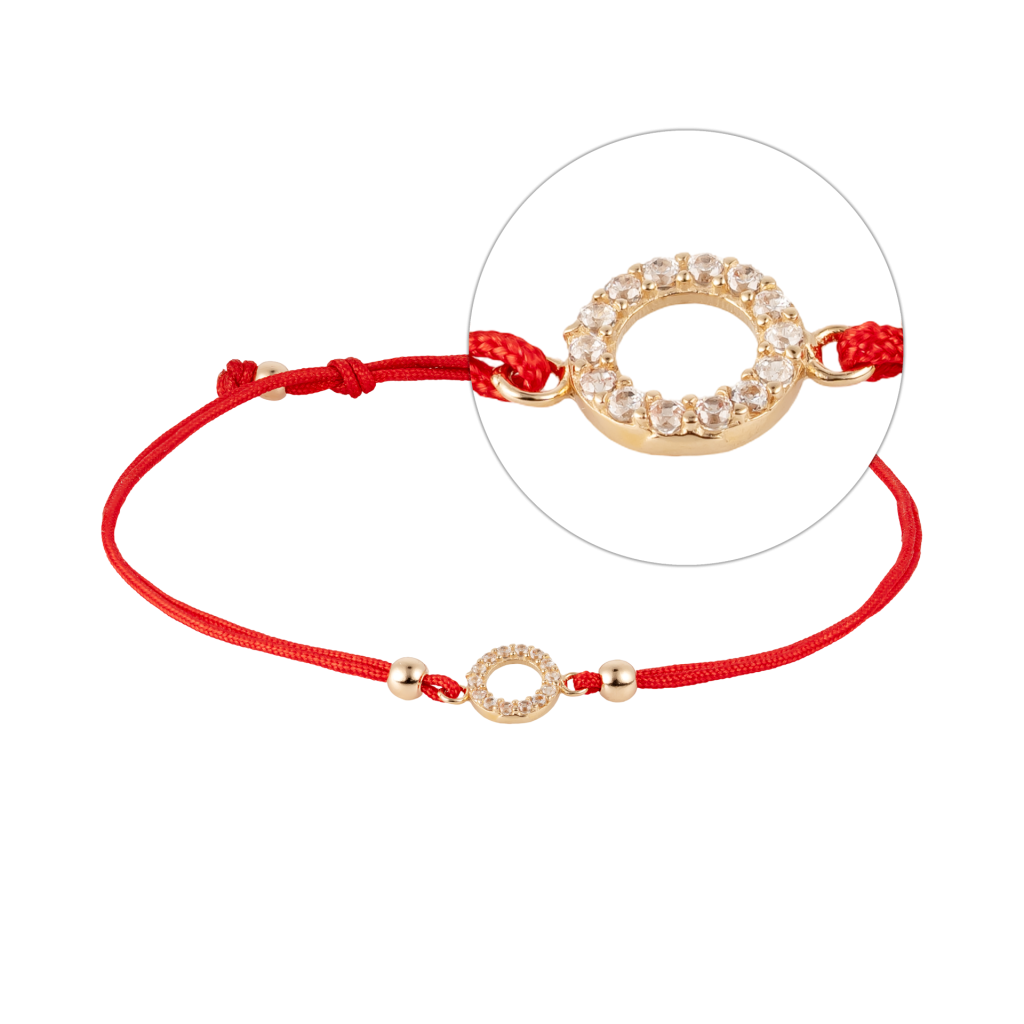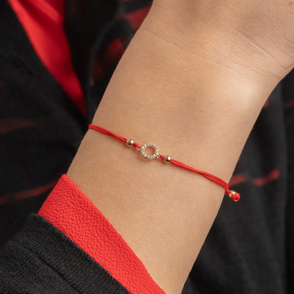 Raudono Siūlo Apyrankė Su Auksiniu Pakabuku Ir Cirkoniais