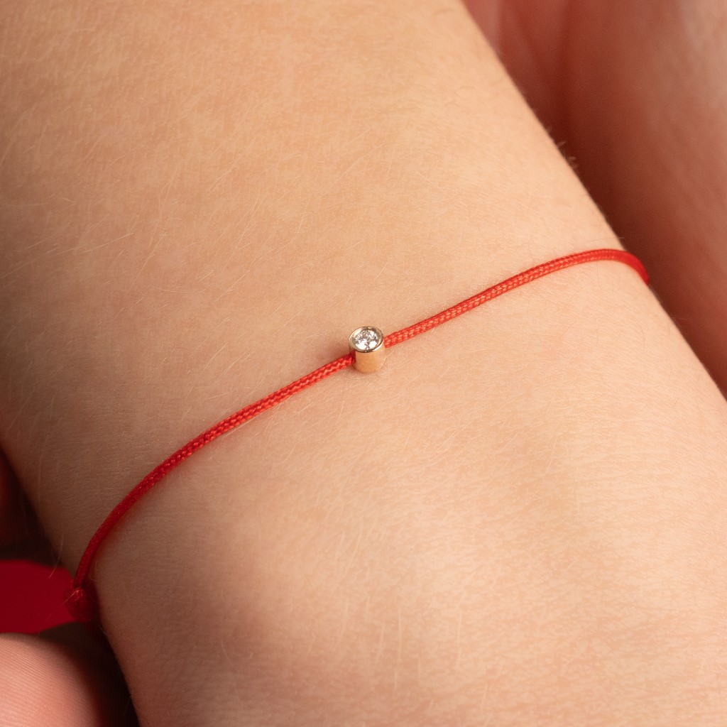 Raudono siūlo apyrankė su deimantu ir auksu 0.05ct - Siūlų apyrankės su auksu - Goldinga