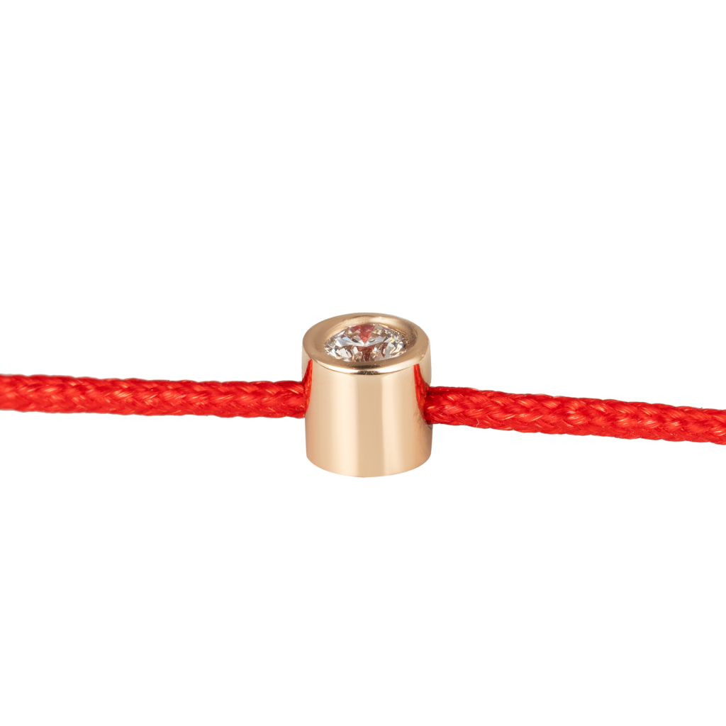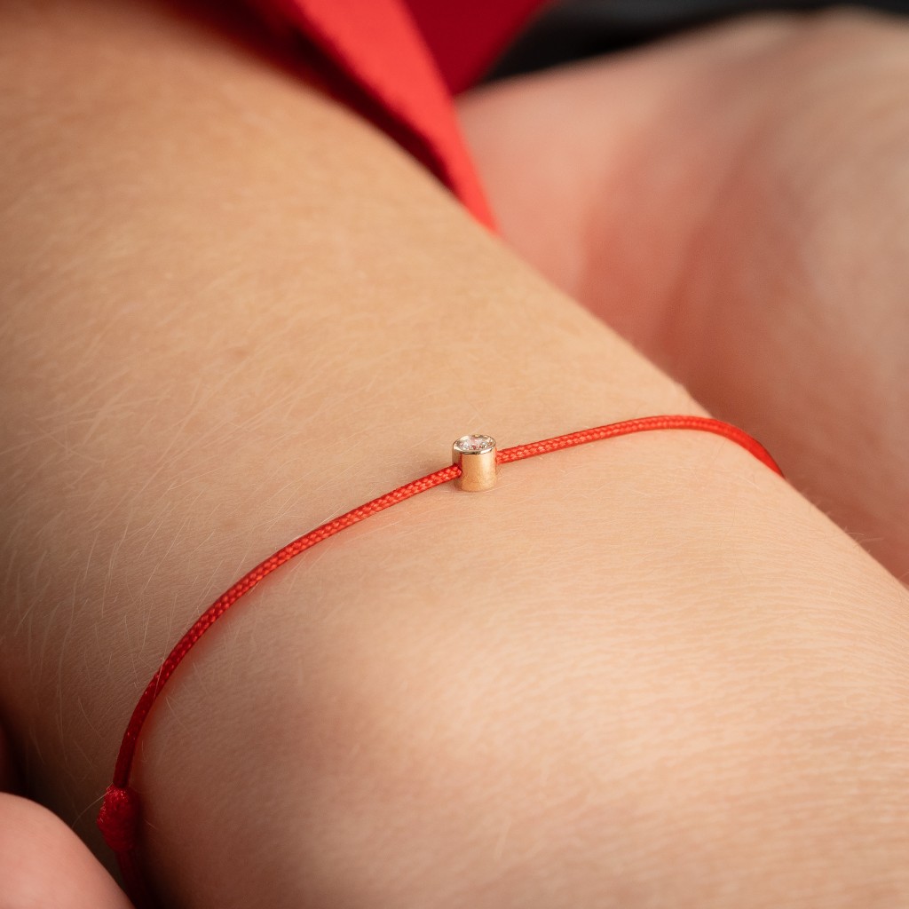 Raudono Siūlo Apyrankė Su auksiniu Pakabuku Ir Cirkoniais "Dobilas"