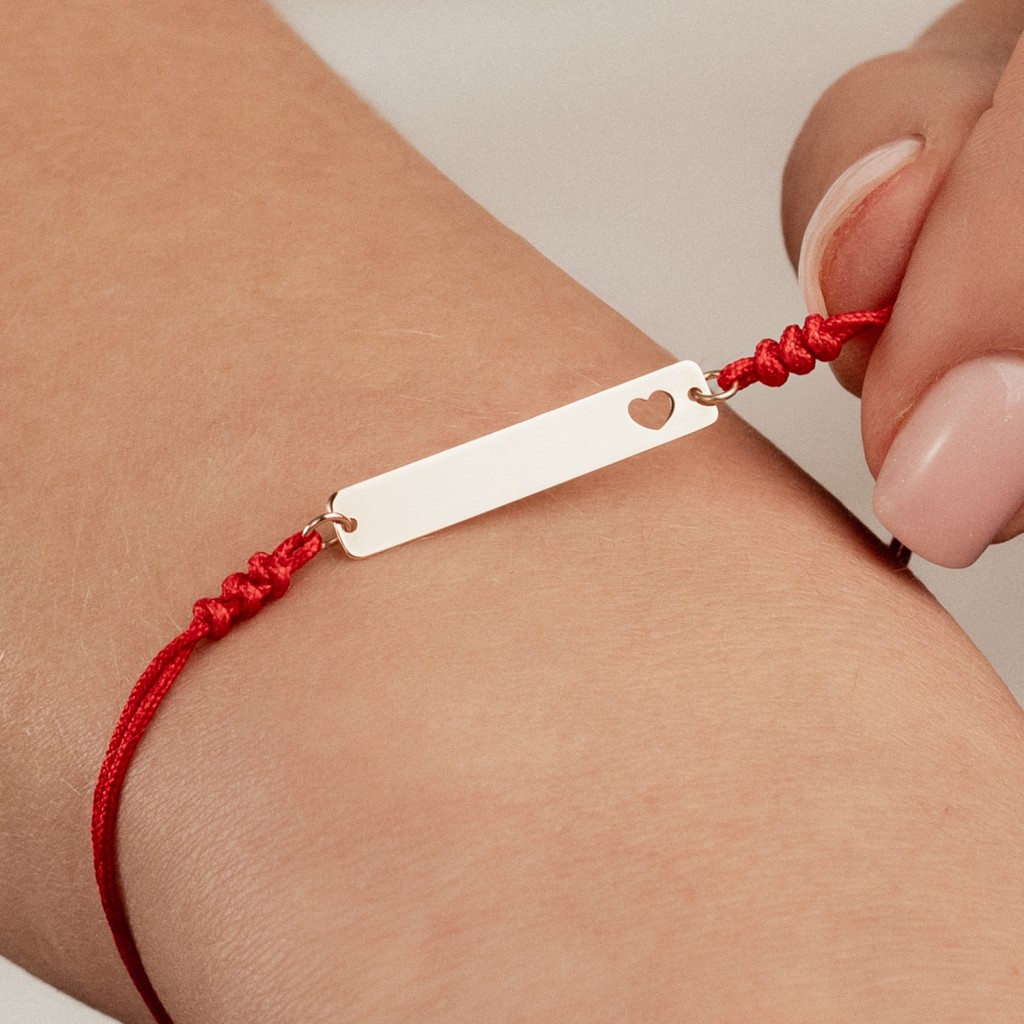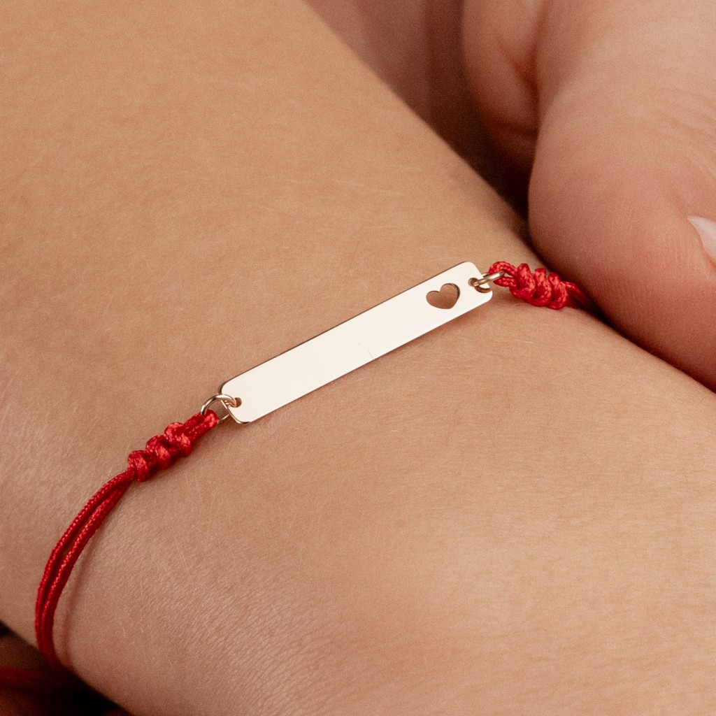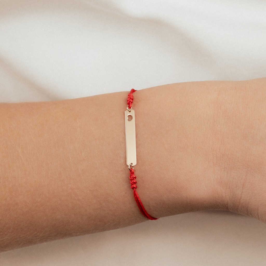 Raudono Siūlo Apyrankė Su Auksiniu Pakabuku "Širdelė"