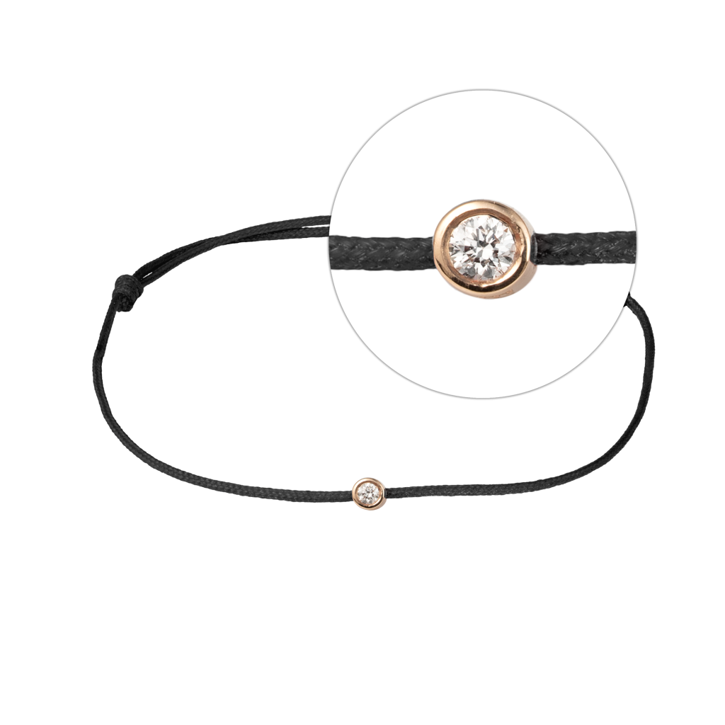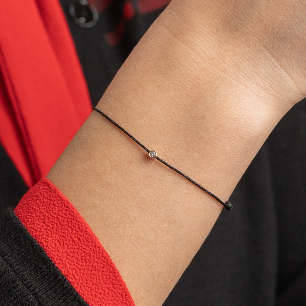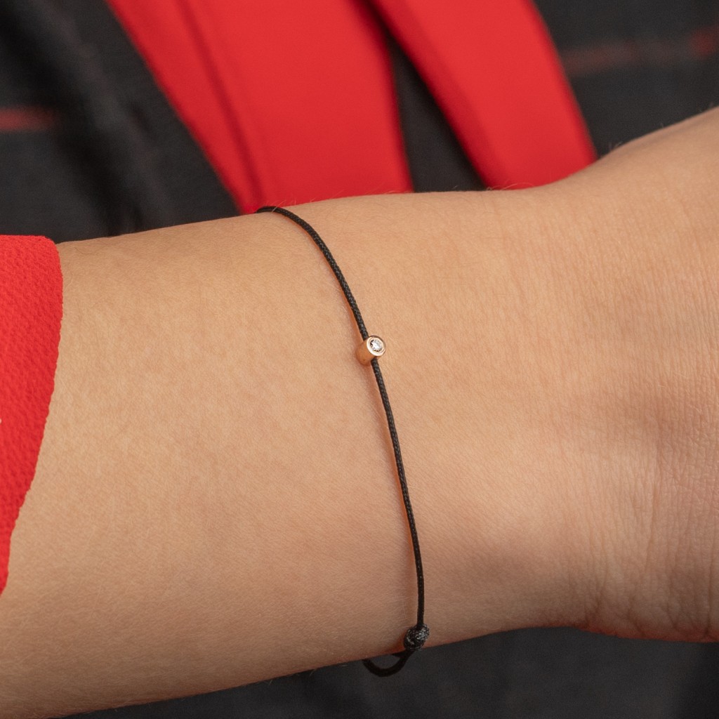Juodo siūlo apyrankė su deimantu ir auksu 0.05ct