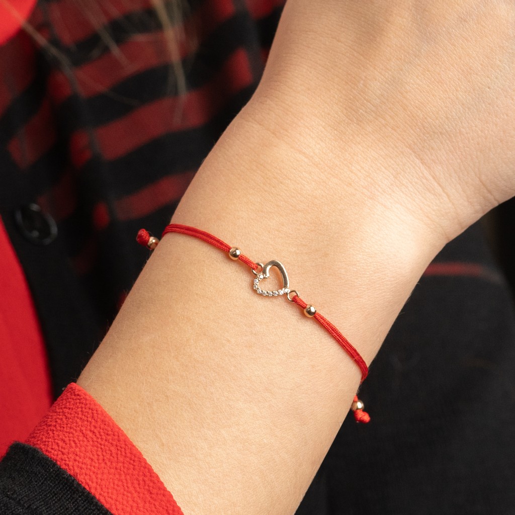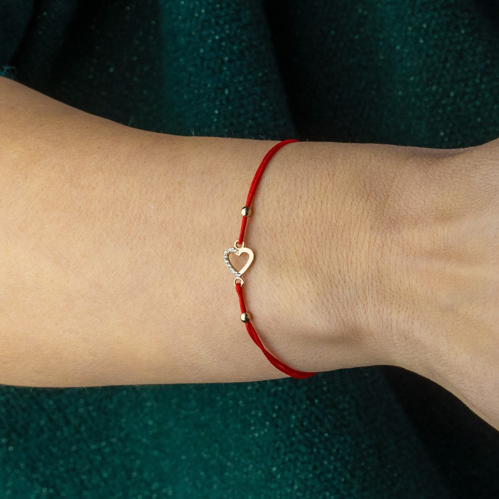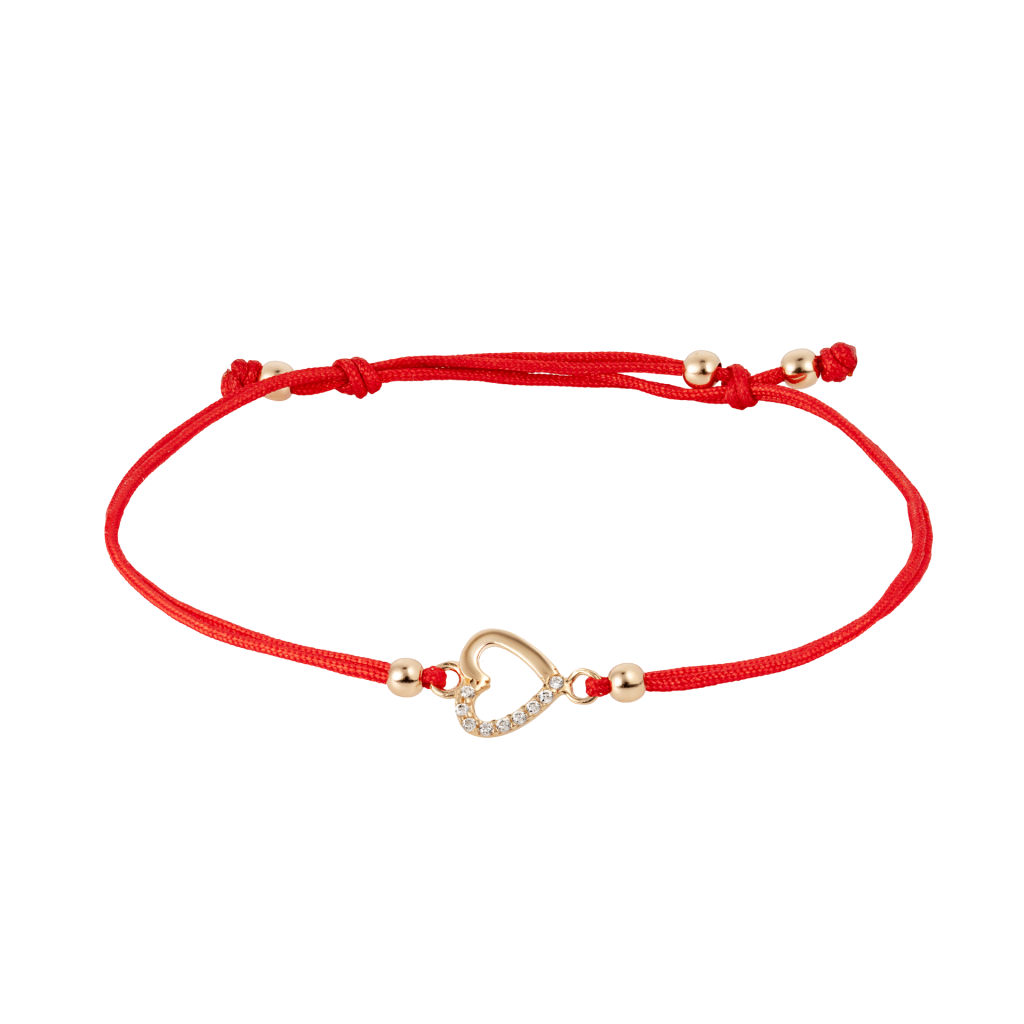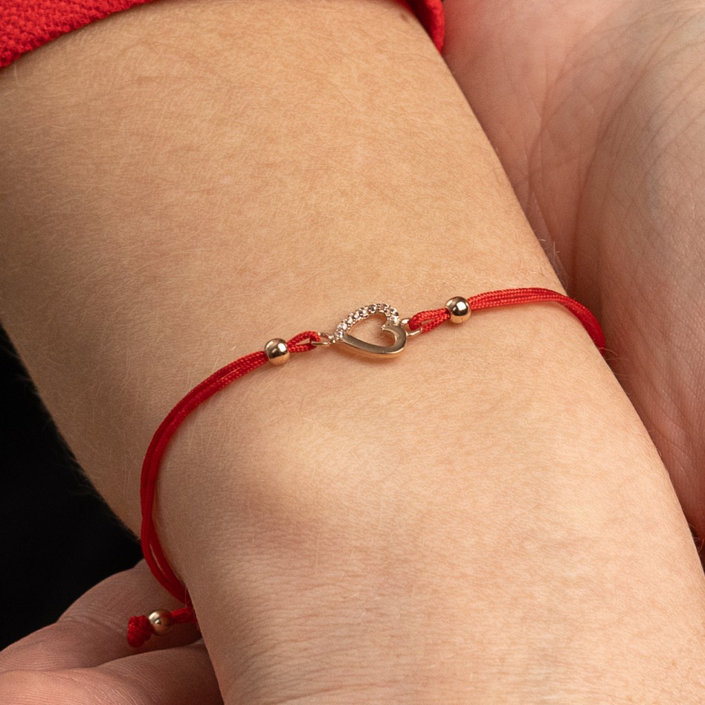 Raudono Siūlo Apyrankė Su Auksiniu Pakabuku "Širdelė" - Siūlų apyrankės su auksu - Goldinga