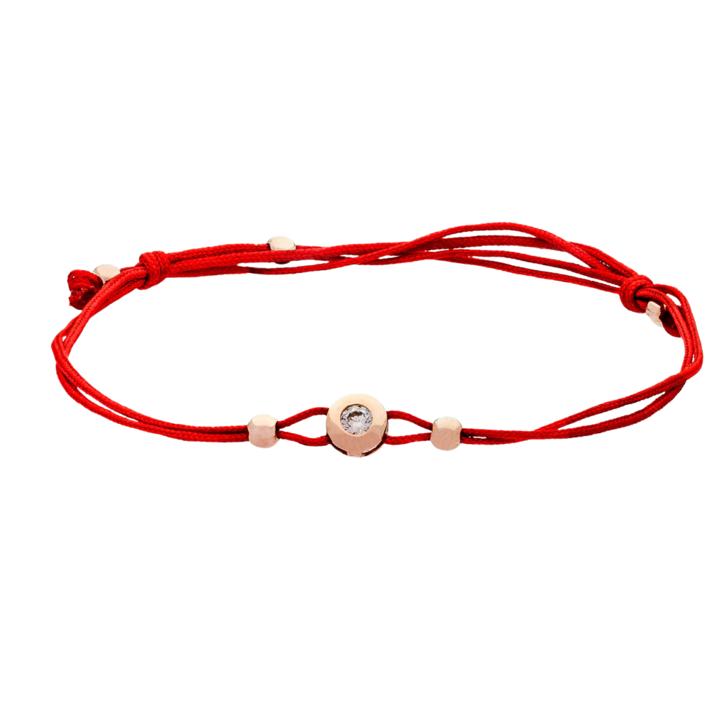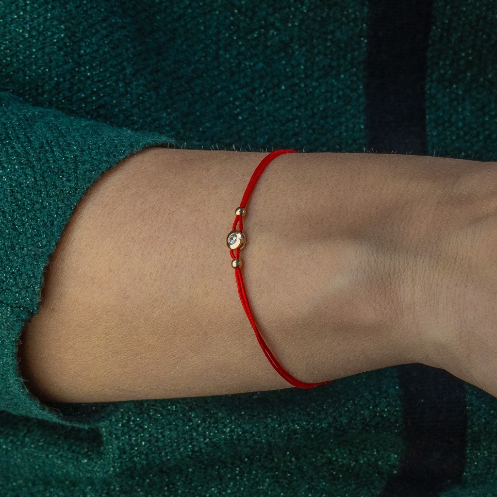 Raudono siūlo apyrankė su cirkonio pakabuku - Siūlų apyrankės su auksu - Goldinga