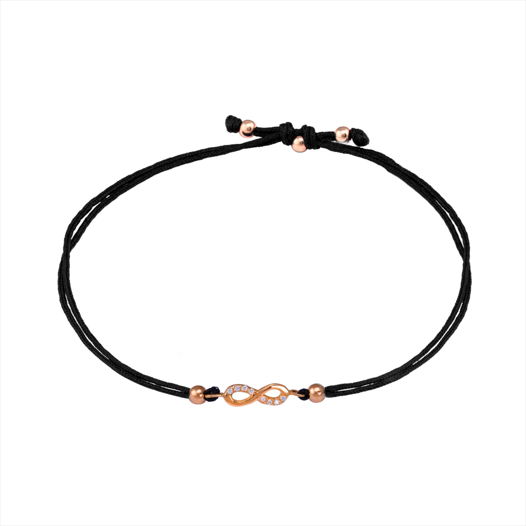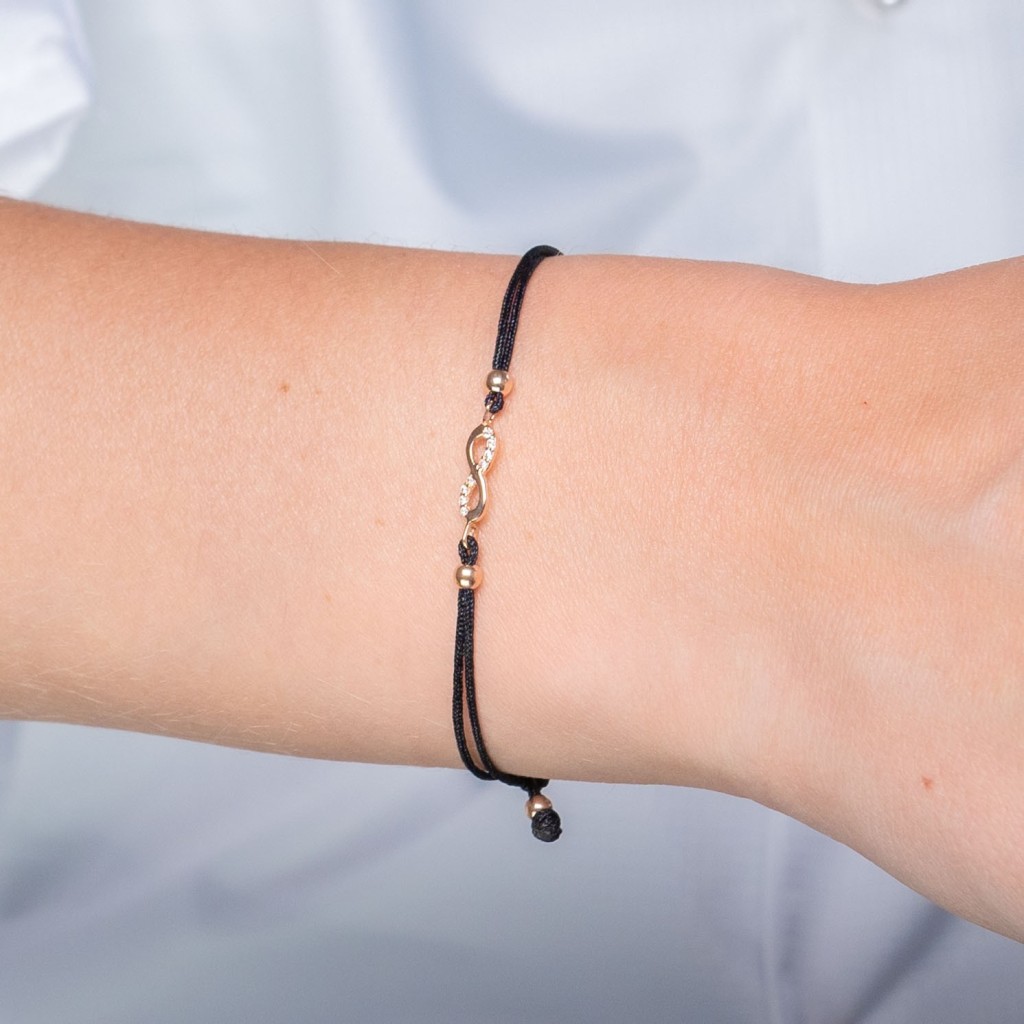 Juodo Siūlo Apyrankė Su auksiniu Pakabuku Ir Cirkoniais "Begalybė" - Siūlų apyrankės su auksu - Goldinga