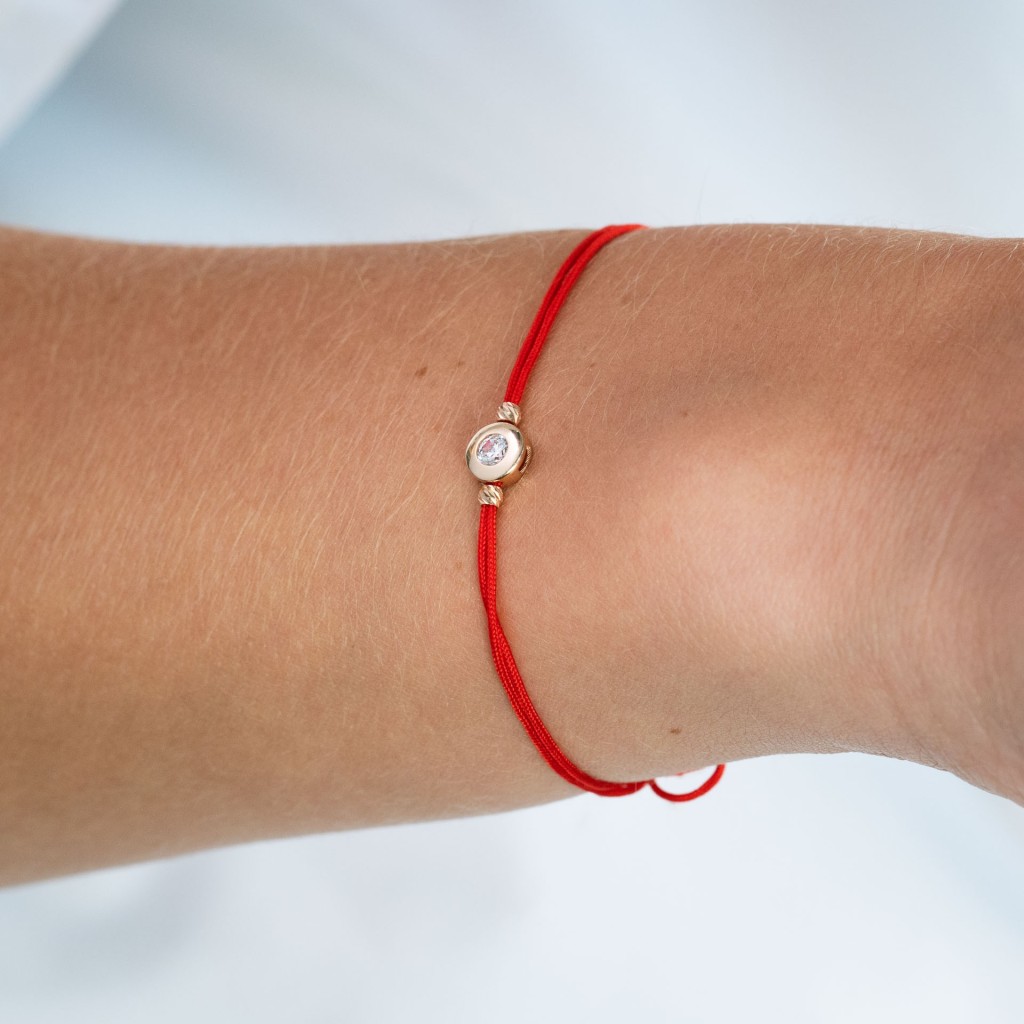 Raudono Siūlo Apyrankė Su Auksiniu cirkonio Pakabuku - Siūlų apyrankės su auksu - Goldinga