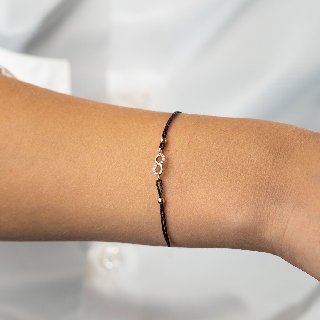 Juodo Siūlo Apyrankė Su Auksiniu Pakabuku "Begalybė" - Siūlų apyrankės su auksu - Goldinga