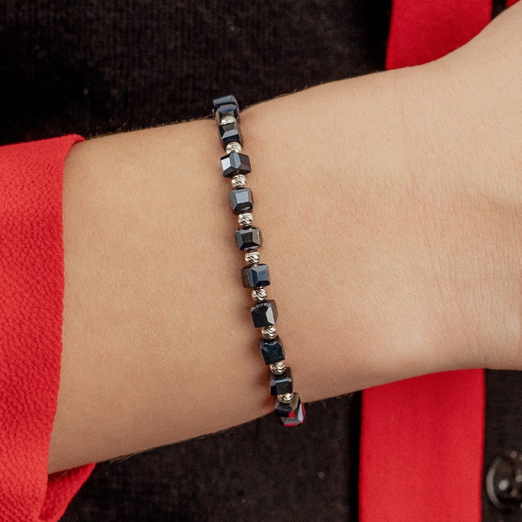 Juodo Siūlo Apyrankė Su Sidabru Ir Hematitais