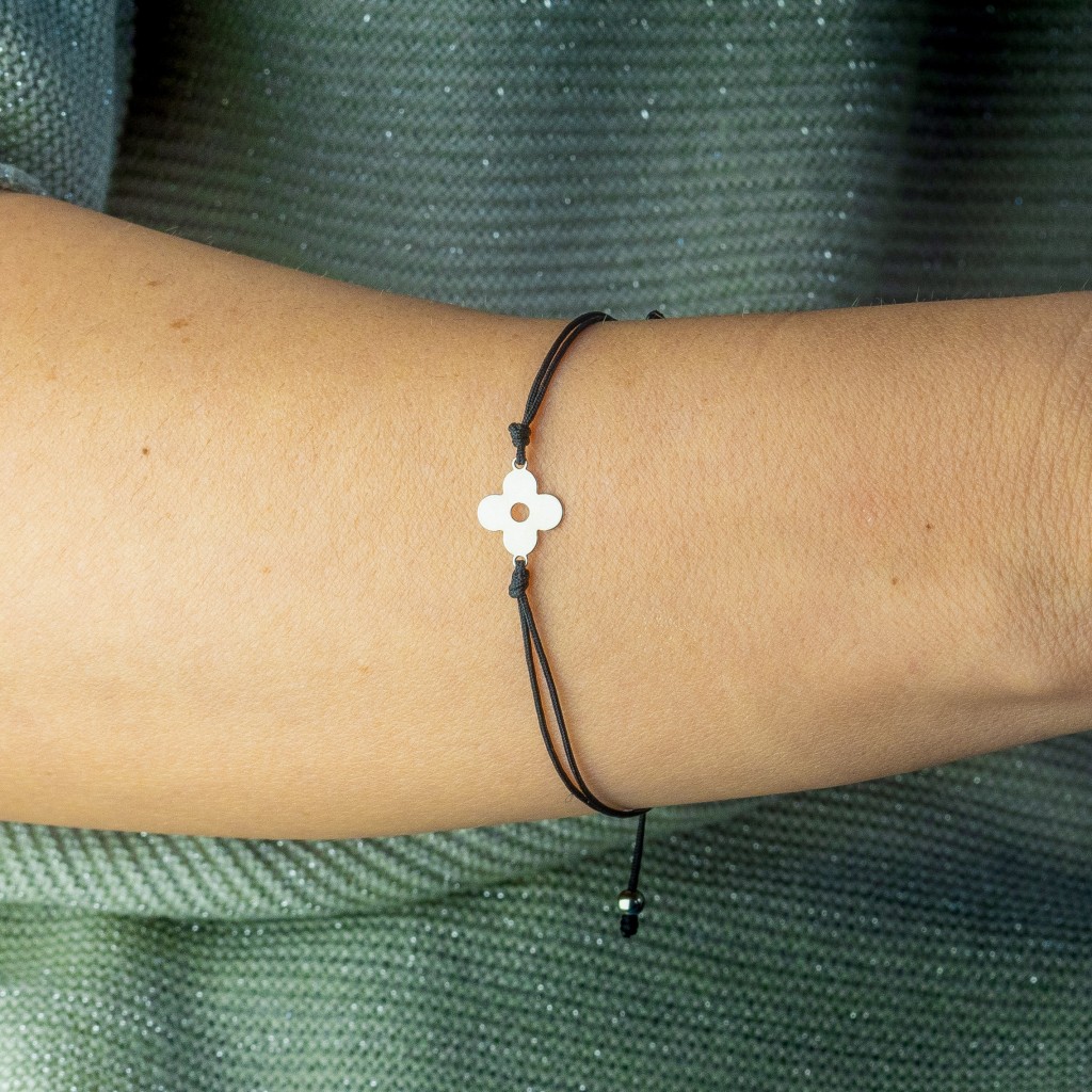 Juodo siūlo apyrankė su sidabriniu pakabuku
