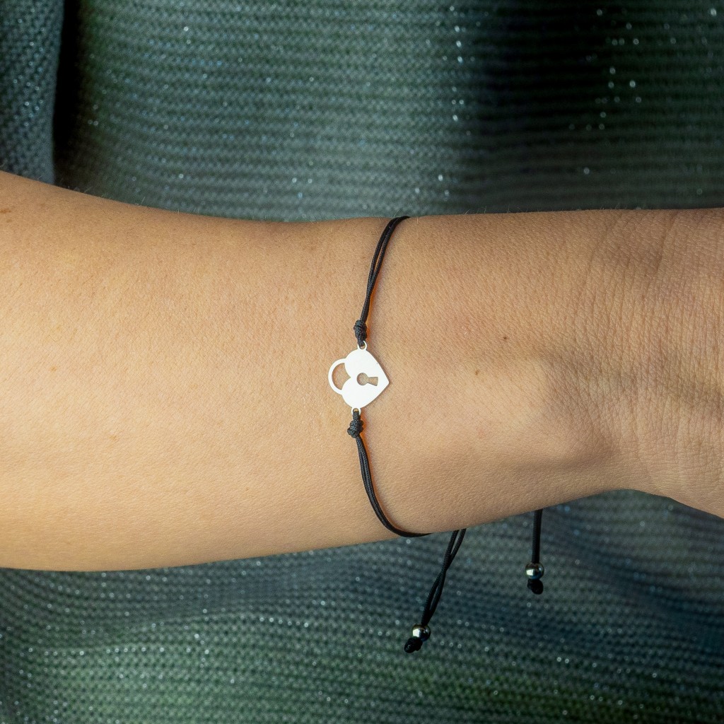 Juodo siūlo apyrankė su sidabriniu pakabuku