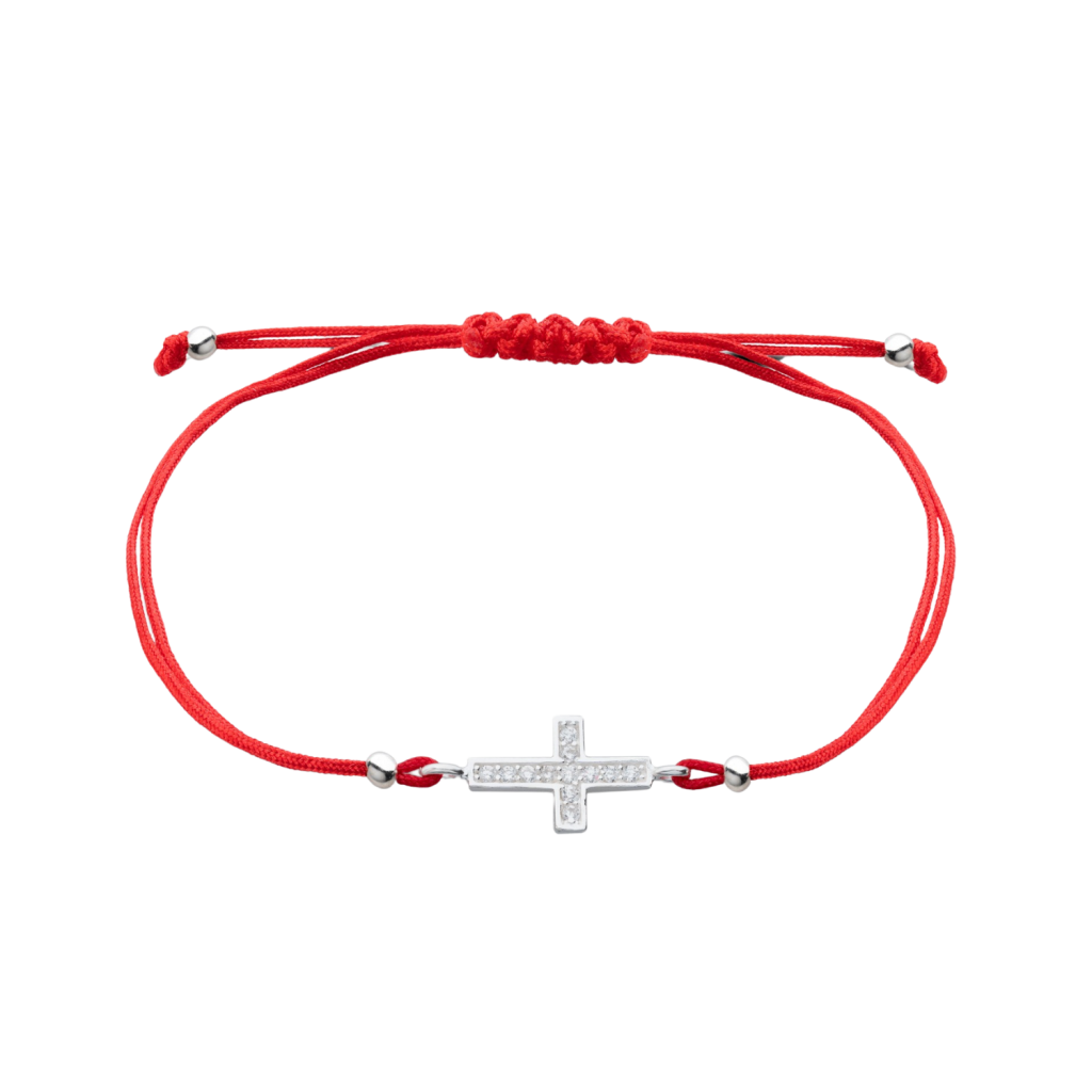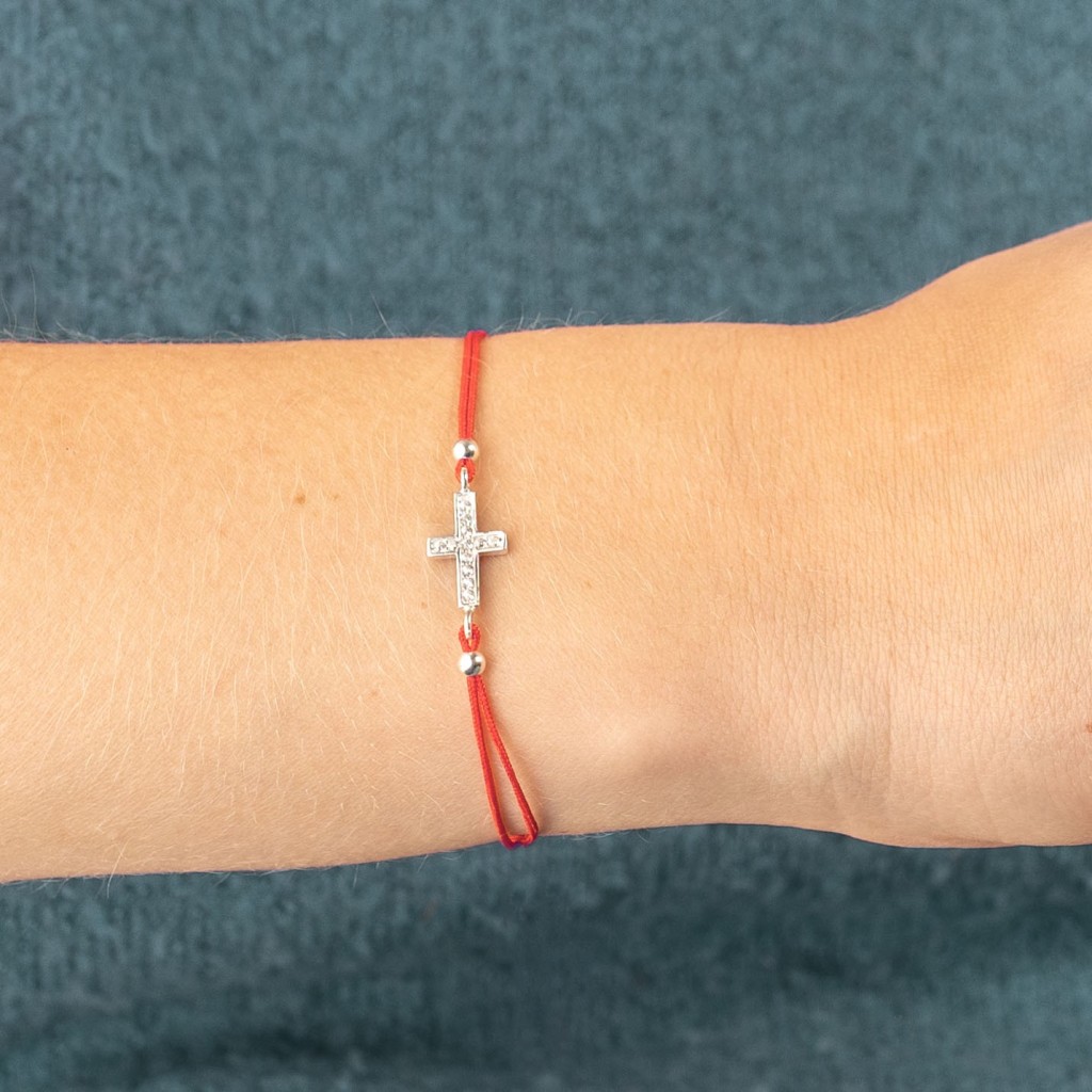 Raudono Siūlo Apyrankė Su Sidabriniu Pakabuku "Kryželis" - Siūlų apyrankės su sidabru - Goldinga