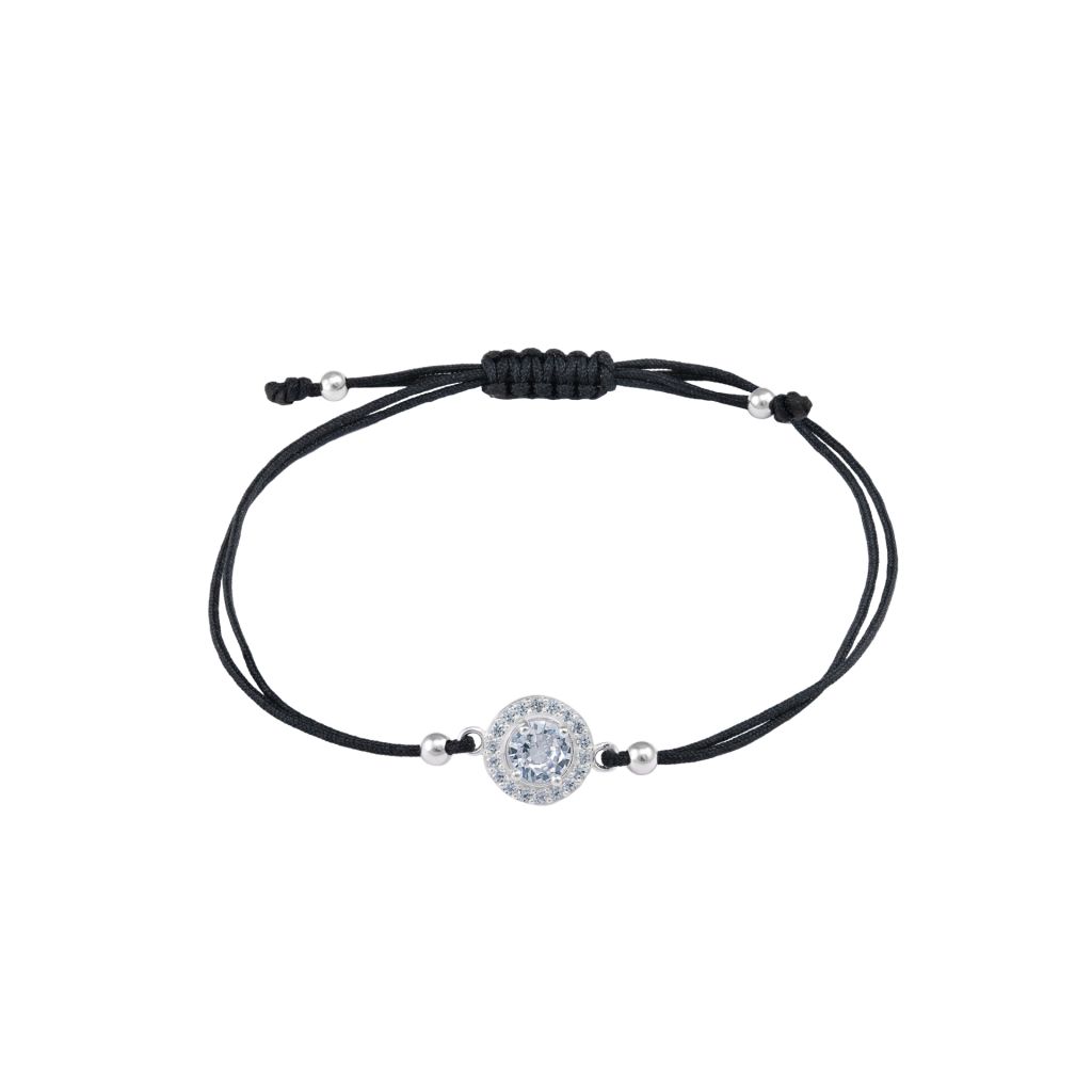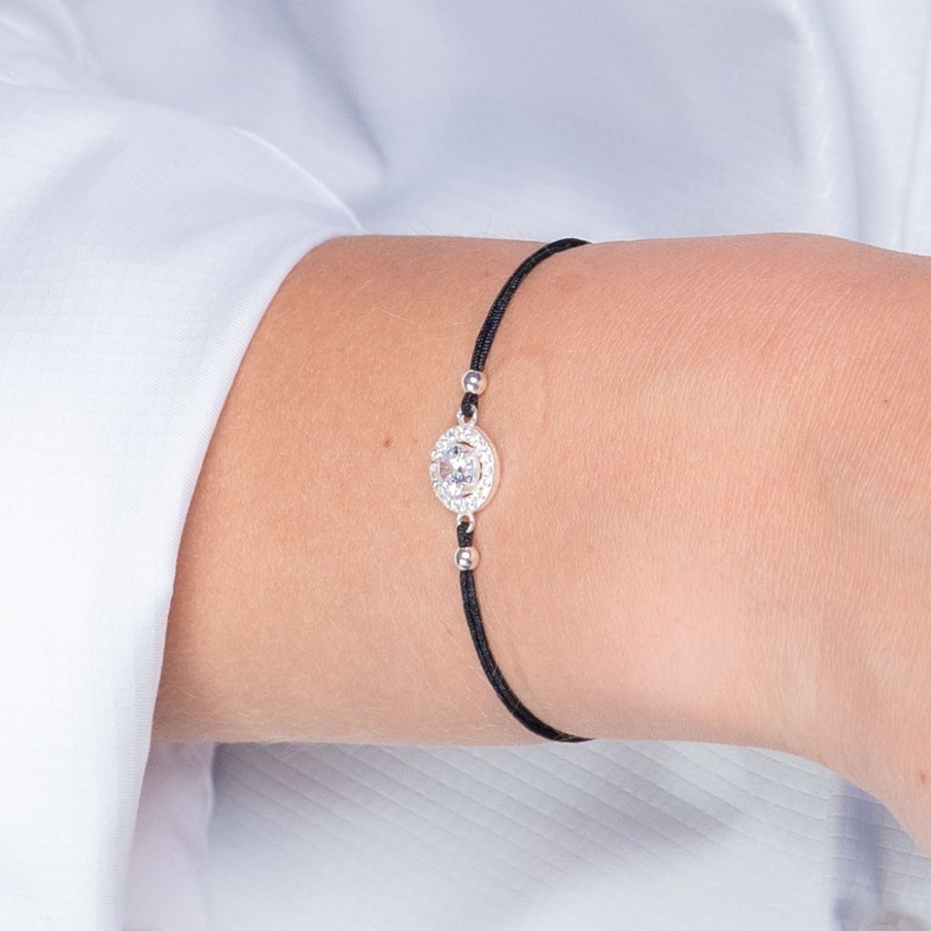 Juodo Siūlo Apyrankė Su Sidabriniu Pakabuku Ir Cirkoniais - Siūlų apyrankės su sidabru - Goldinga