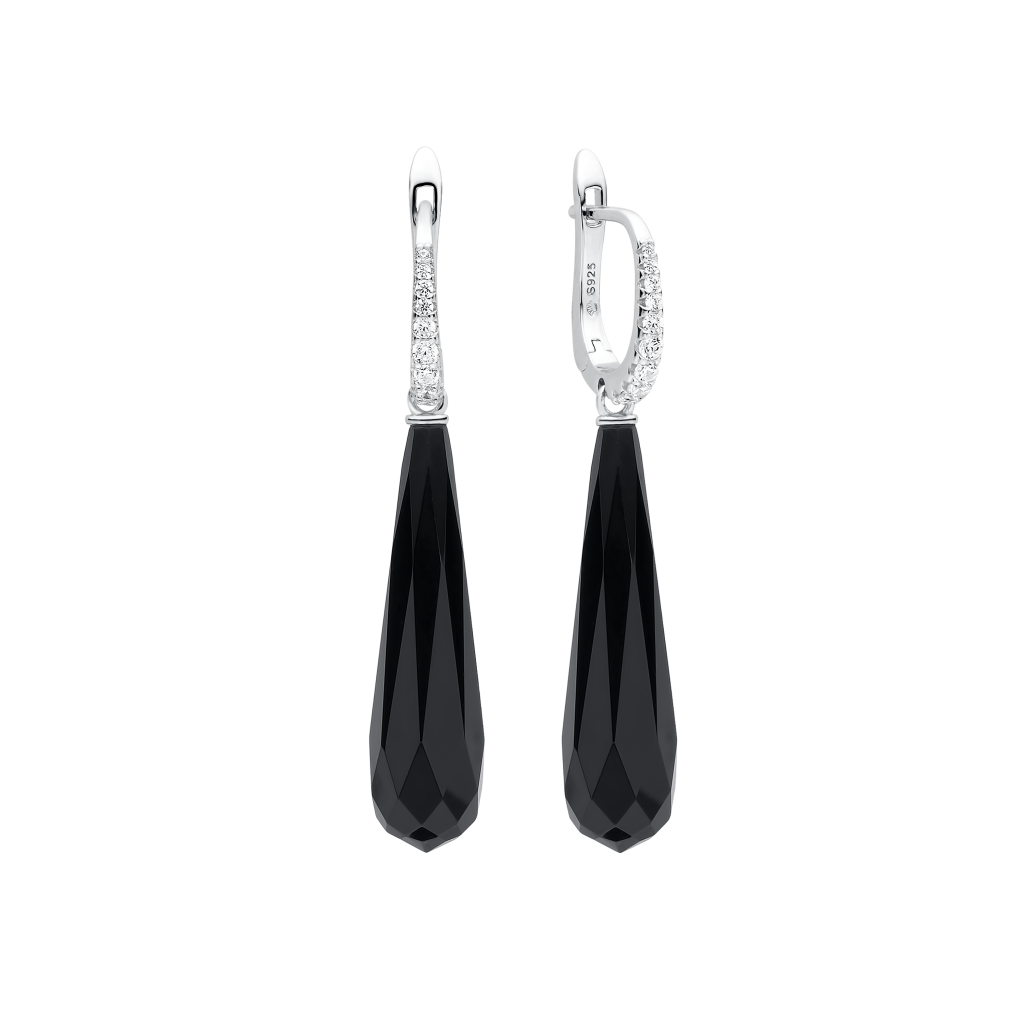 Sidabriniai auskarai Su Oniksais ir cirkoniais