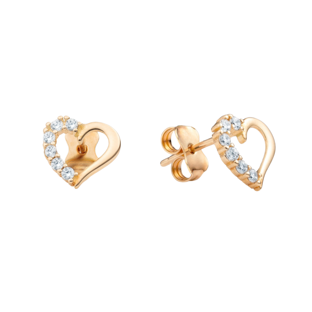 Auksiniai auskarai su cirkoniais "Širdelės"