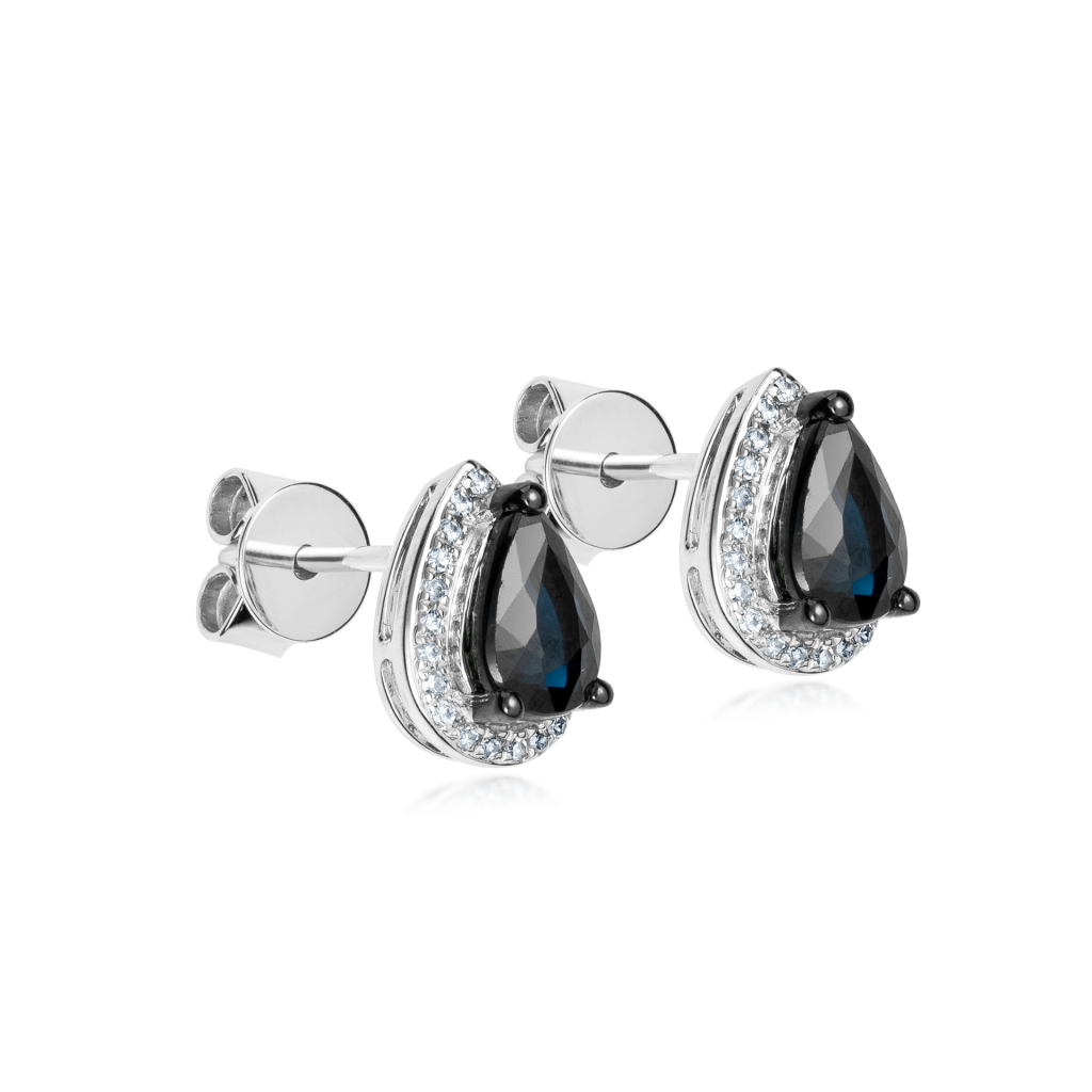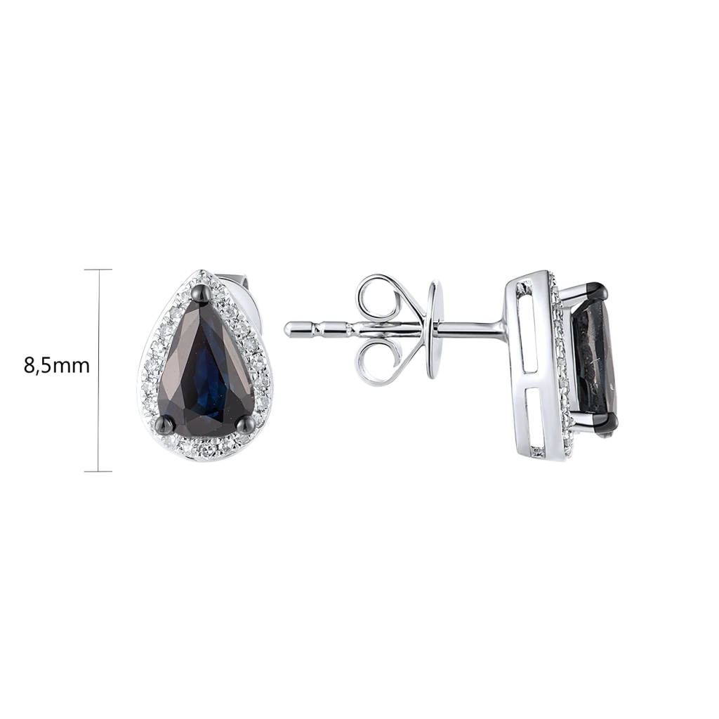 Balto aukso auskarai su safyrais ir deimantais - Auksiniai Auskarai su brangakmeniais - Goldinga