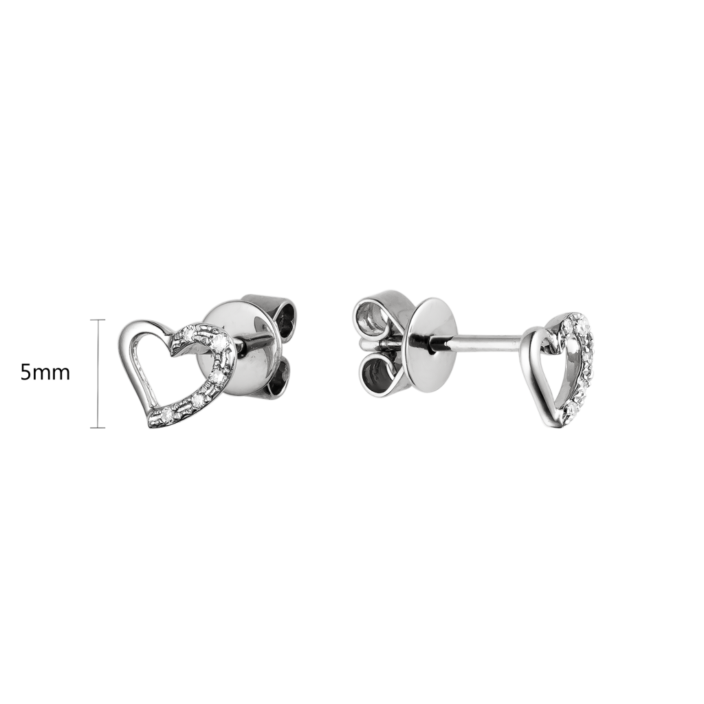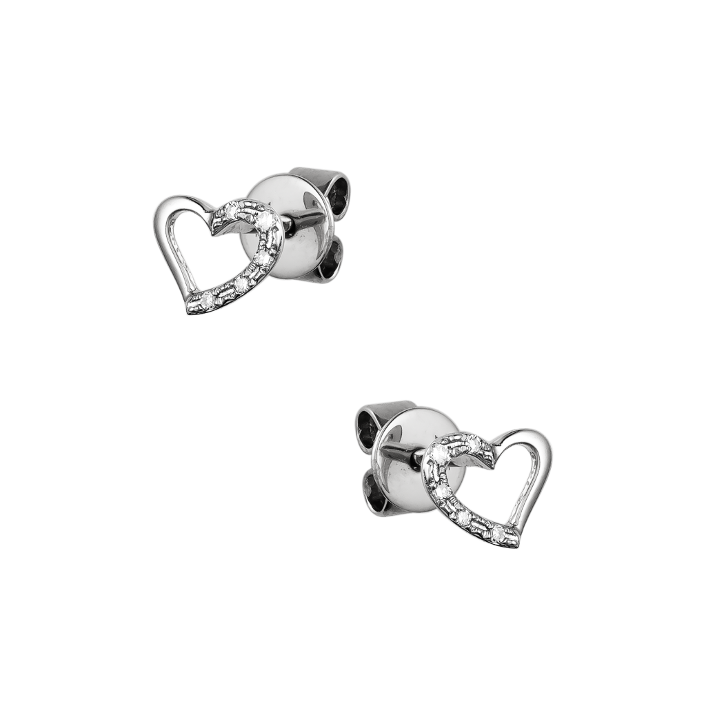 Balto aukso auskarai su deimantais "Širdelė" - Auksiniai Auskarai su brangakmeniais - Goldinga