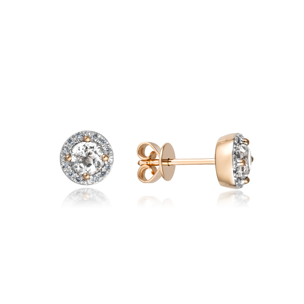 Auksiniai auskarai su deimantais ir skaidriais topazais