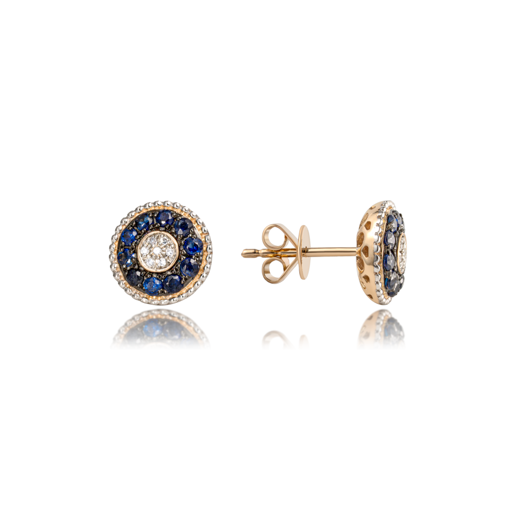 Auksiniai auskarai su deimantais ir safyrais  - Goldinga