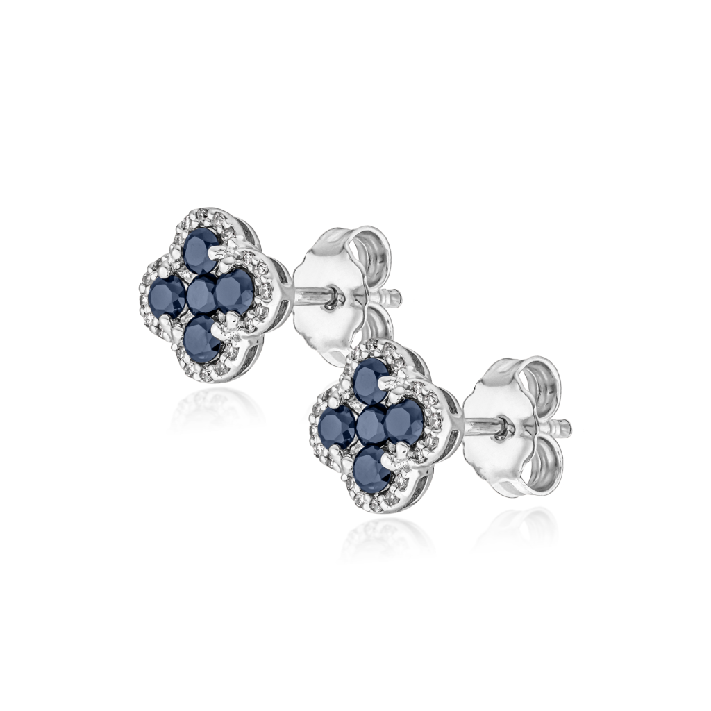 Balto aukso auskarai su deimantais ir safyrais