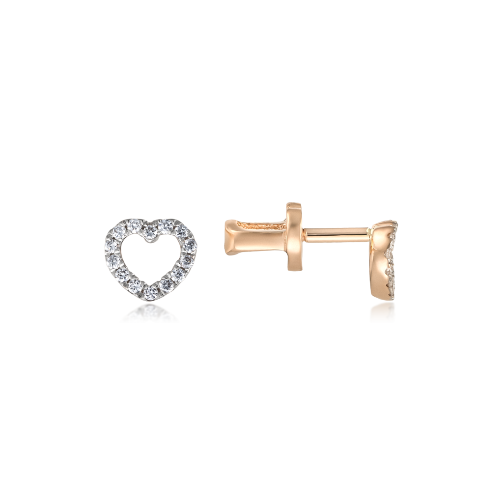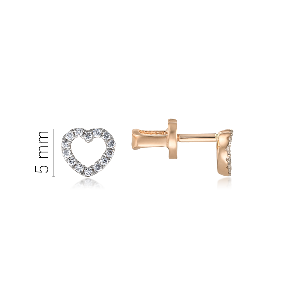 Auksiniai auskarai su deimantais "Širdelė"