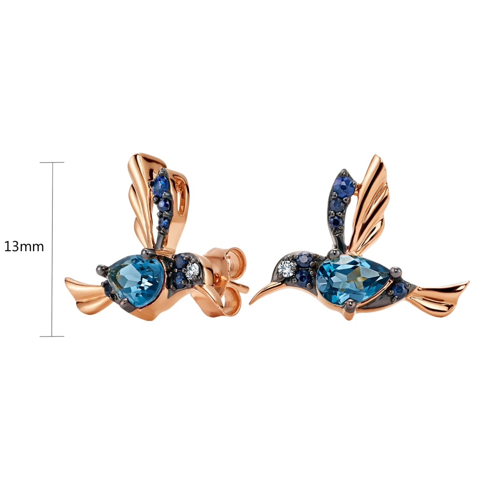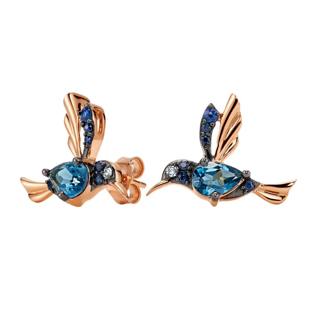 Auksiniai auskarai su topazais, safyrais ir deimantais