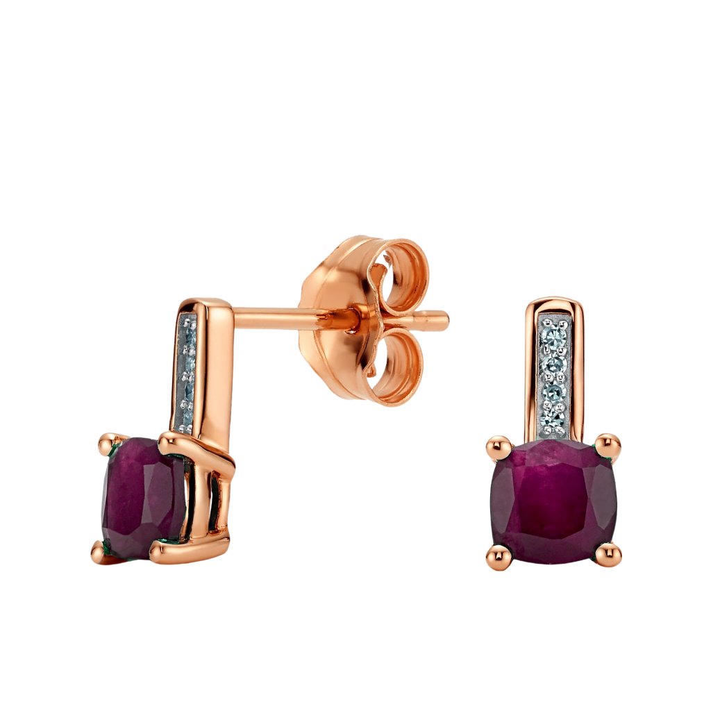 Auksiniai auskarai su rubinais ir deimantais