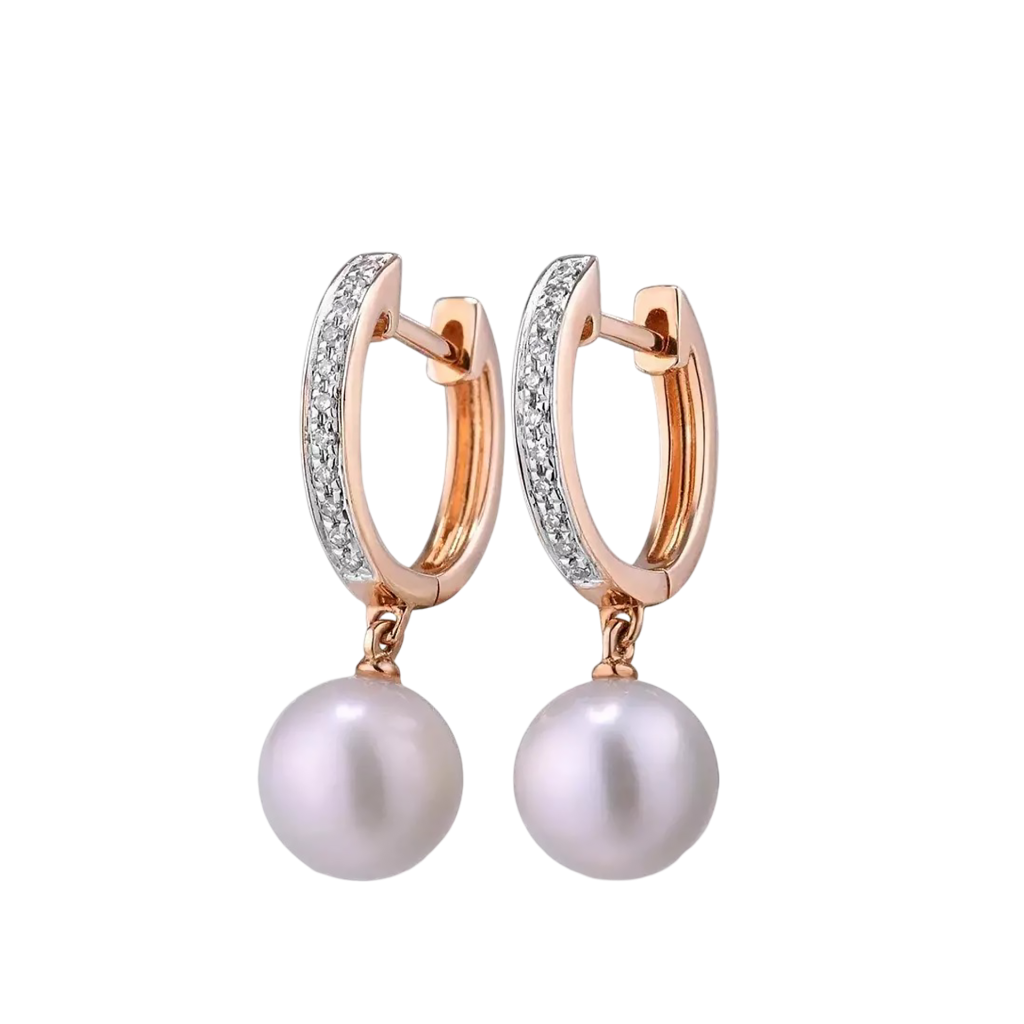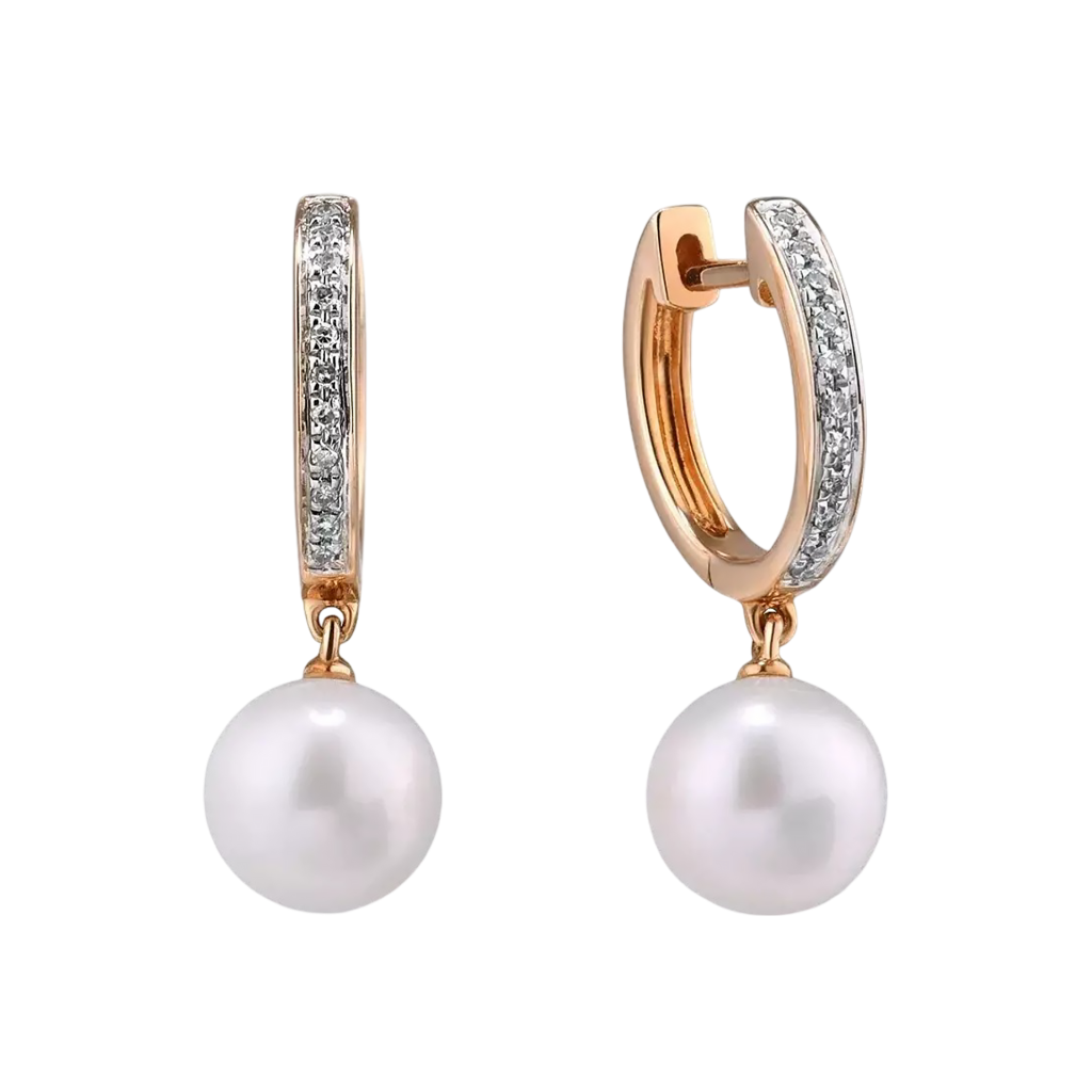 Auksiniai auskarai su deimantais ir perlais