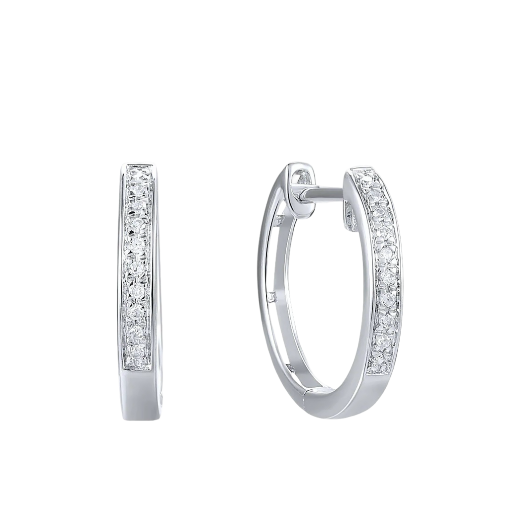 Balto aukso auskarai su deimantais - Auksiniai Auskarai su brangakmeniais - Goldinga