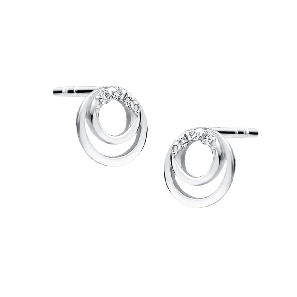 Balto aukso auskarai su briliantais - Auksiniai Auskarai su brangakmeniais - Goldinga
