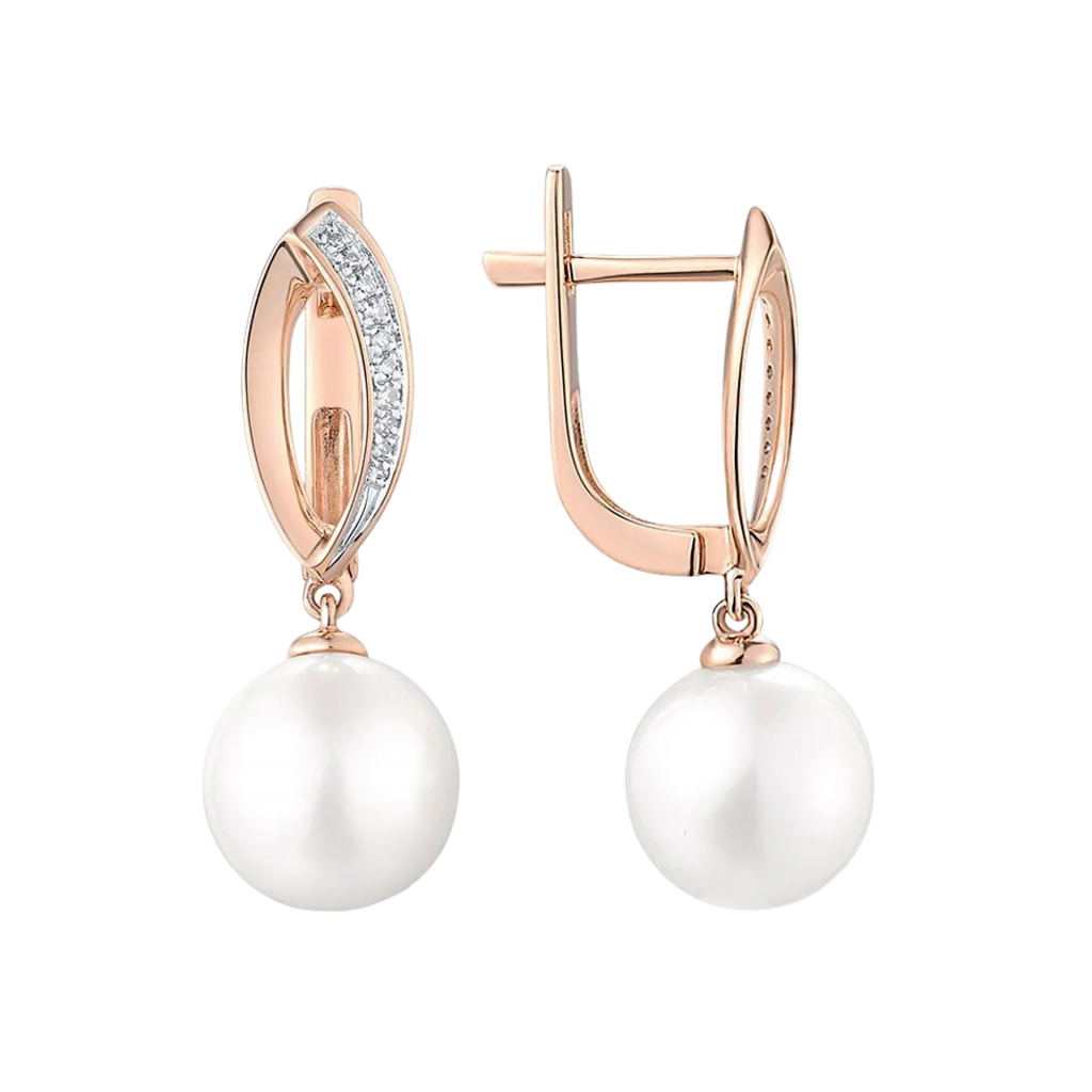 Auksiniai auskarai su perlais ir deimantais