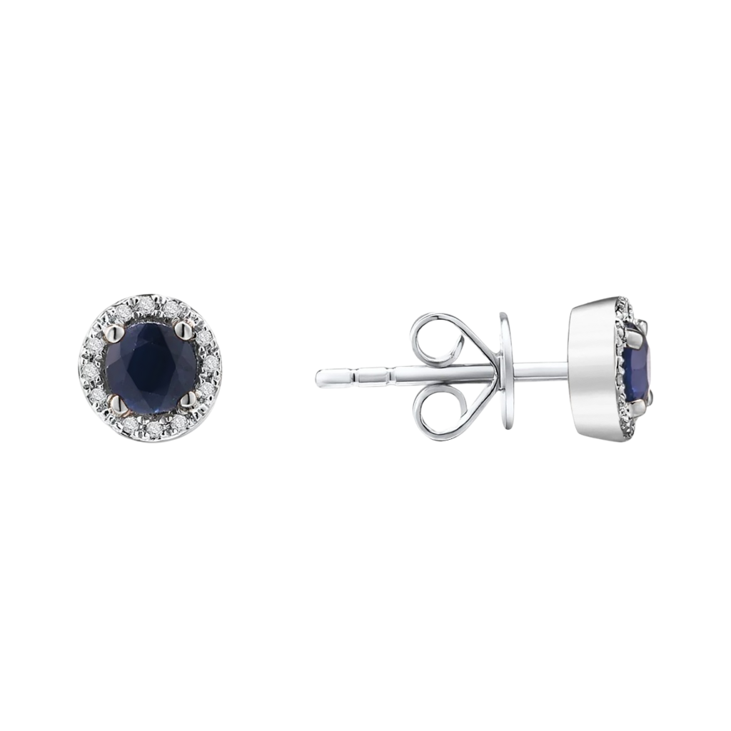 Balto aukso auskarai su safyrais ir deimantais - Auksiniai Auskarai su brangakmeniais - Goldinga