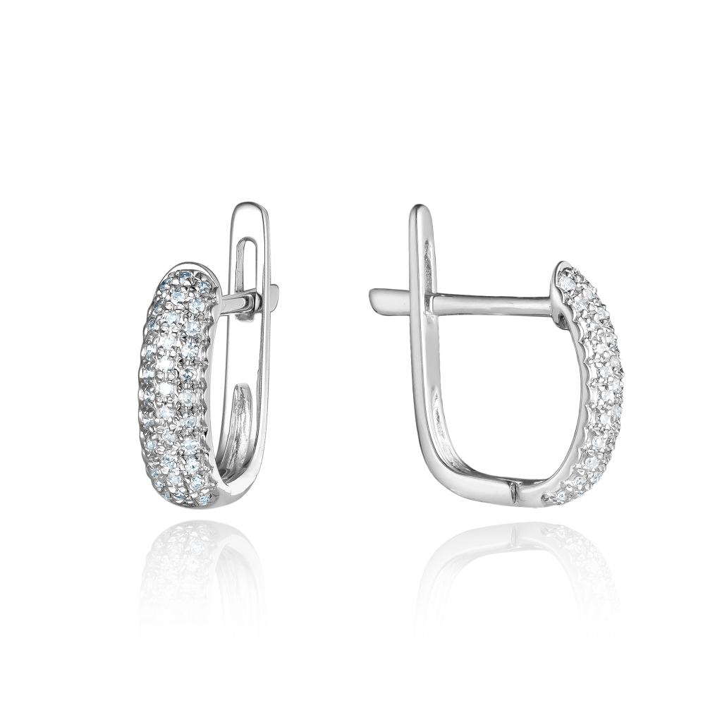 Balto aukso auskarai su deimantais - Auksiniai Auskarai su brangakmeniais - Goldinga