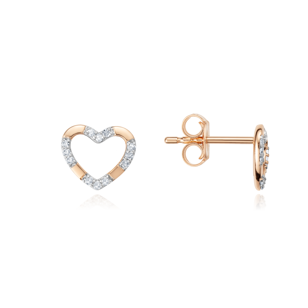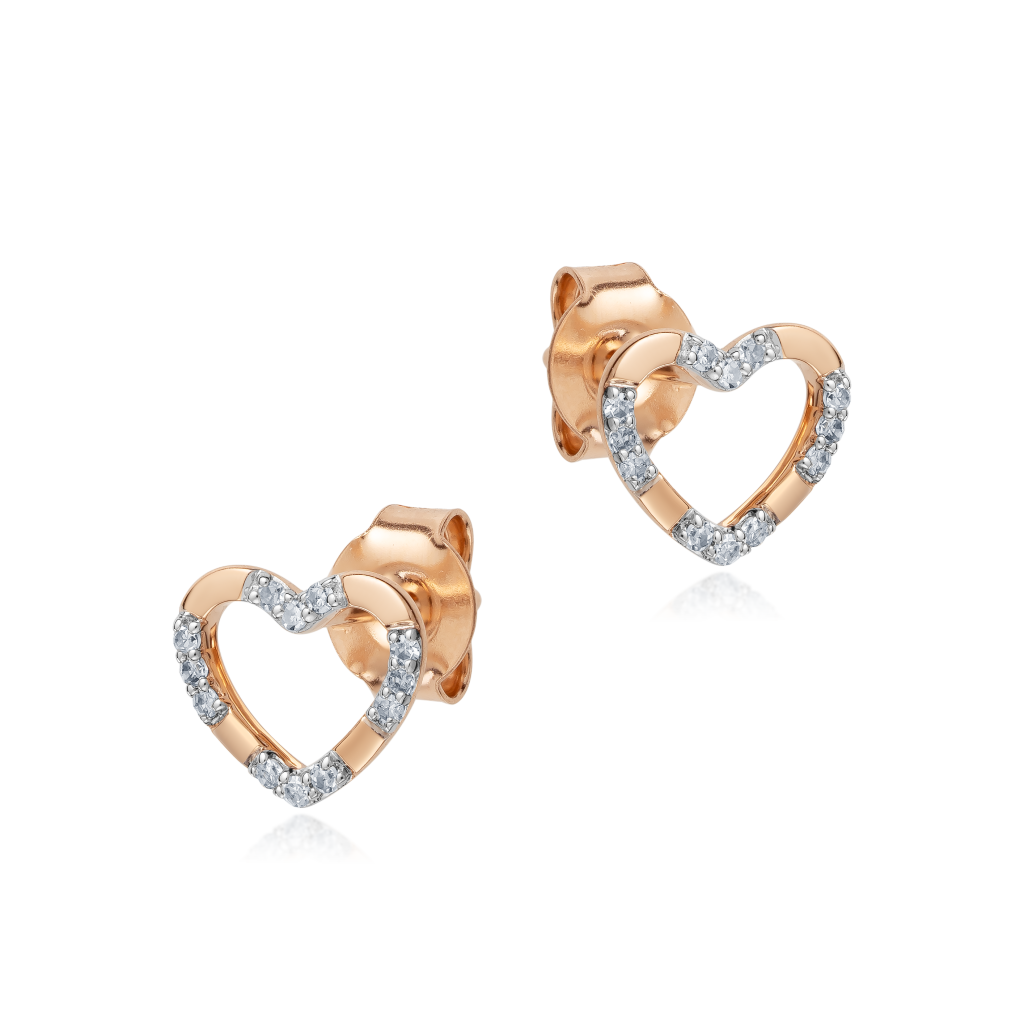 Auksiniai auskarai su deimantais "Širdelė"