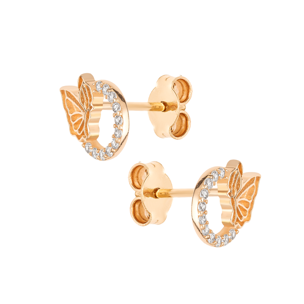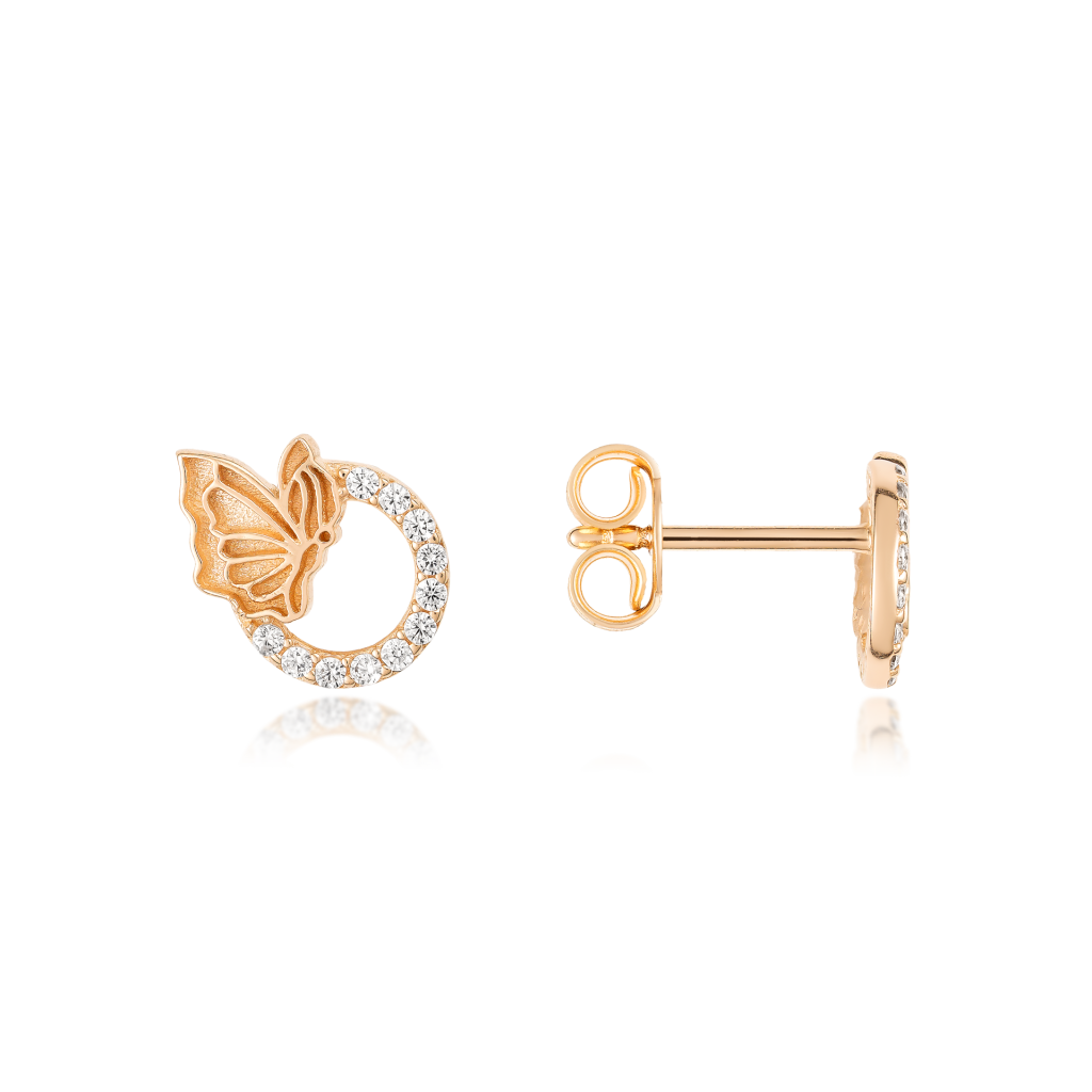 Auksiniai auskarai su cirkoniais "Drugelis"