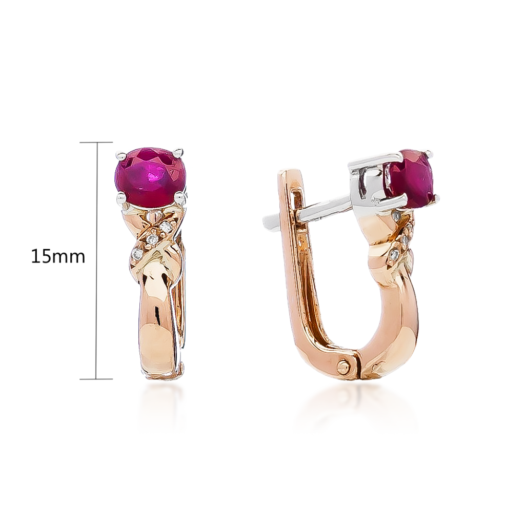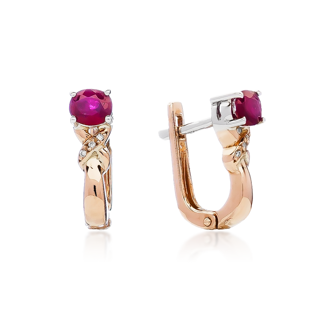Auksiniai auskarai su rubinais ir deimantais