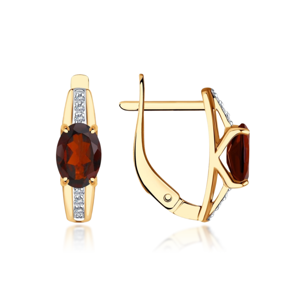 Auksiniai auskarai su cirkoniais ir granatais - Auksiniai auskarai - Goldinga
