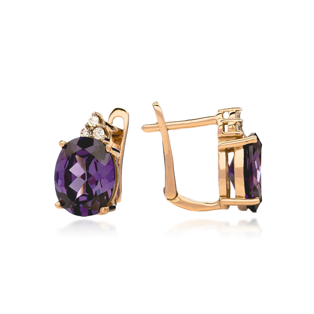 Auksiniai auskarai su ametistais ir cirkoniais