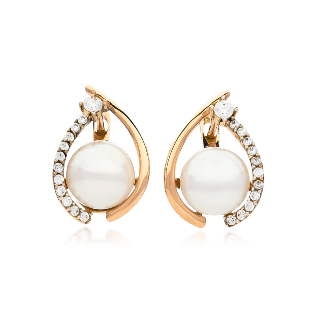Auksiniai auskarai su perlais ir cirkoniais