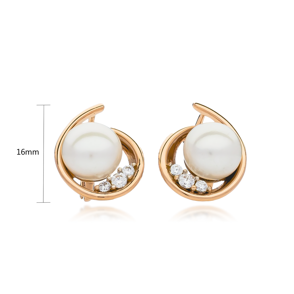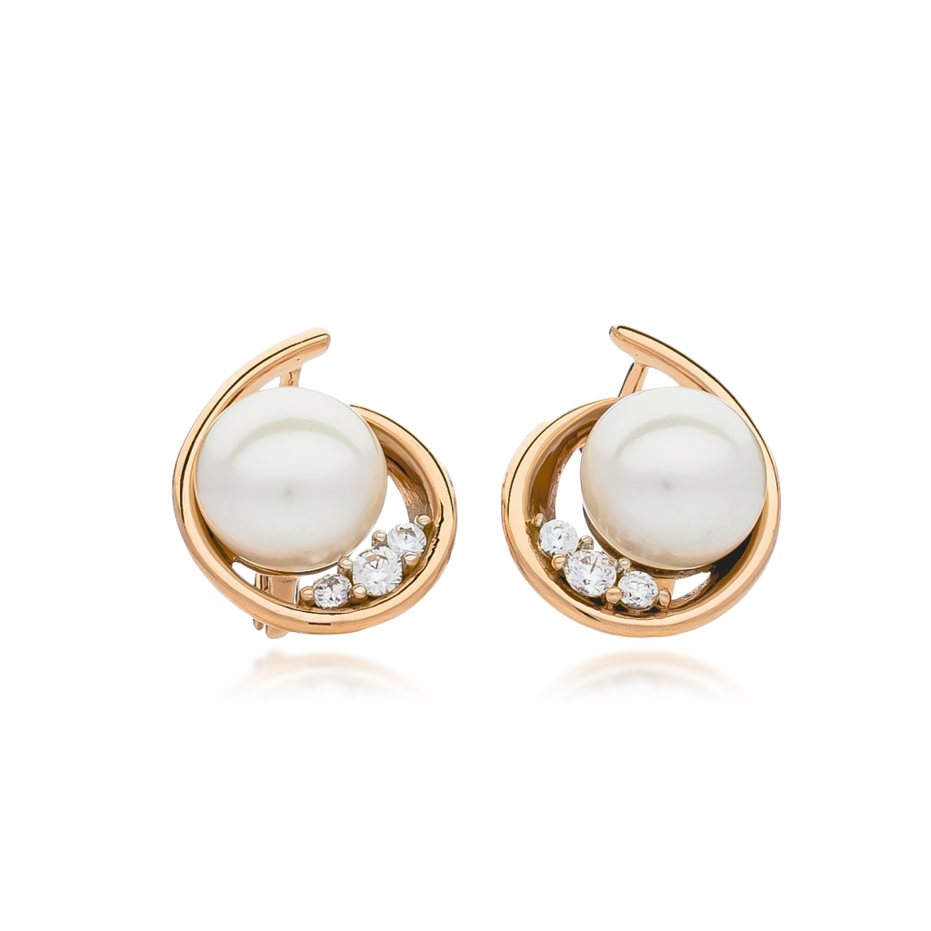 Auksiniai auskarai su perlais ir cirkoniais