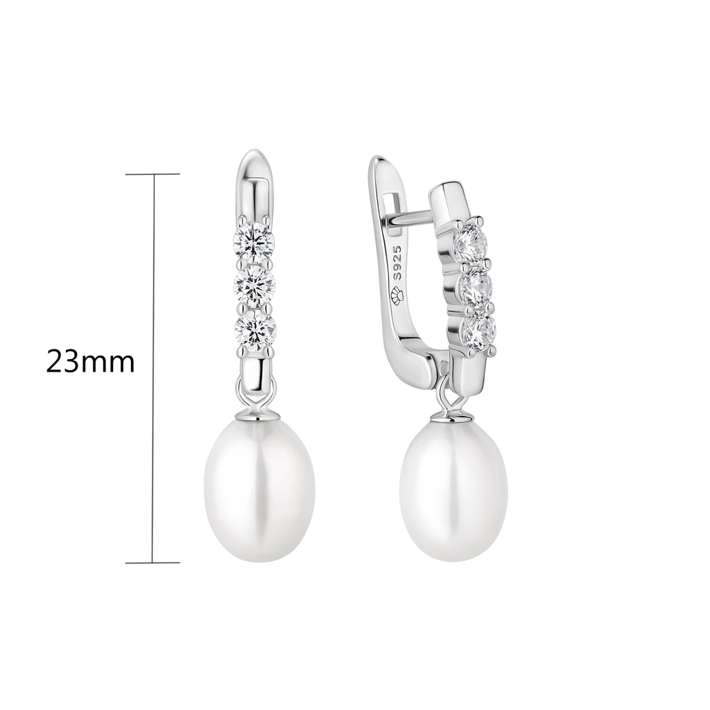 Sidabriniai auskarai su perlais ir cirkoniais - Auskarai su perlais - Goldinga